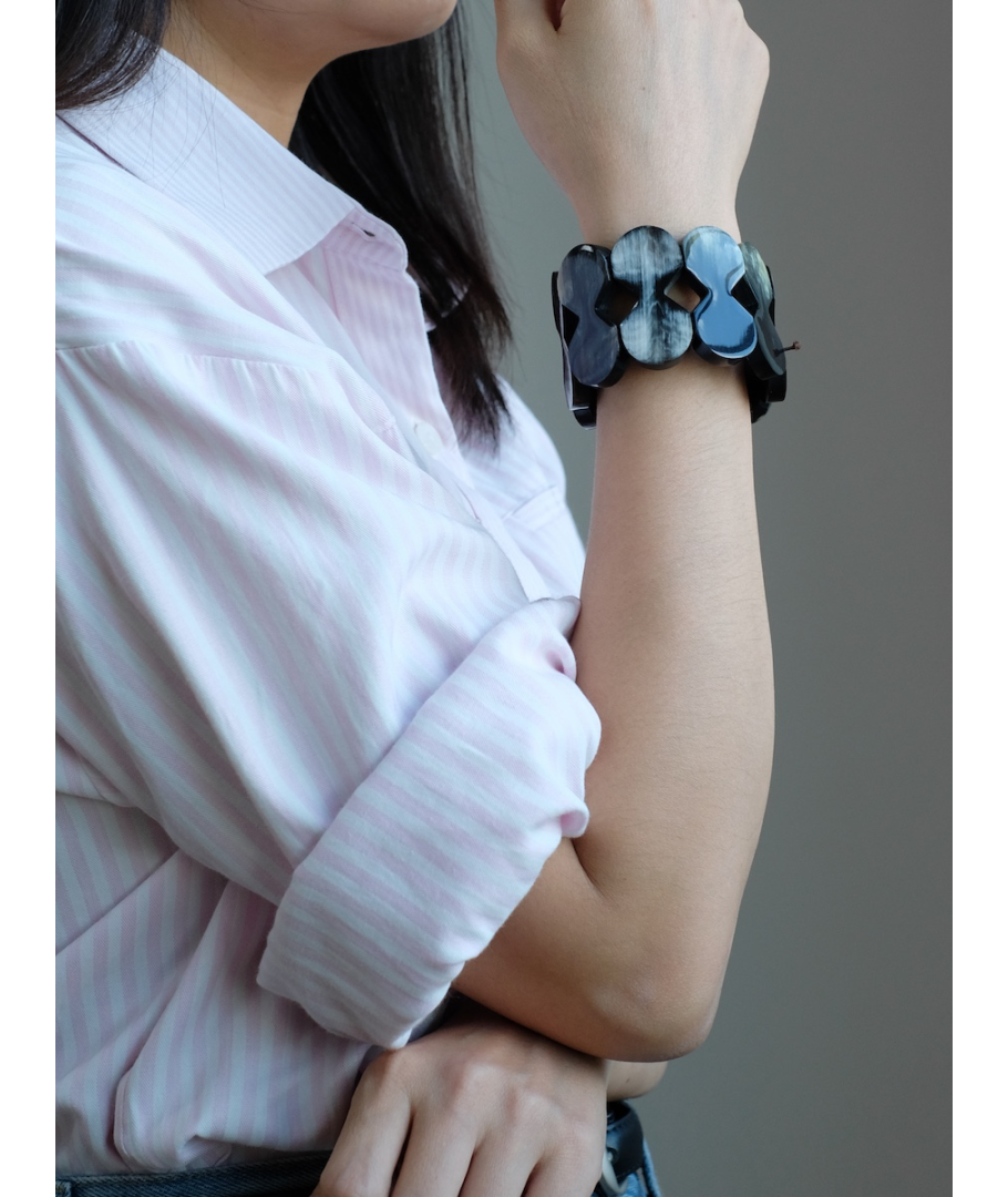 Bracelet articulé pièces couronne 2 en corne noire africaine