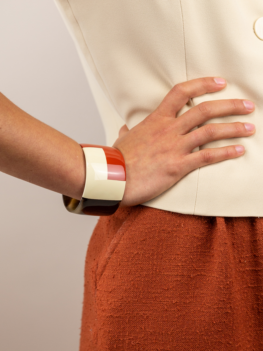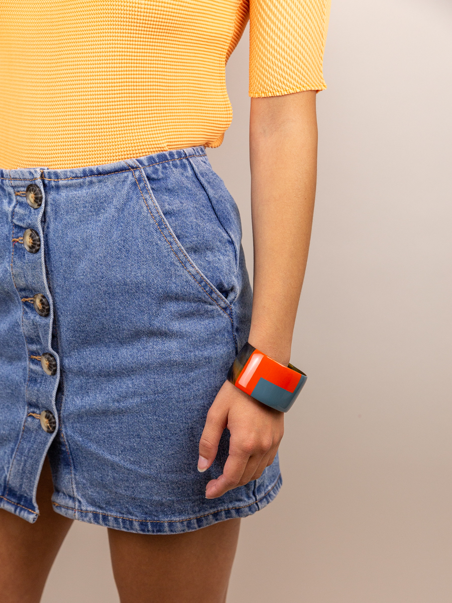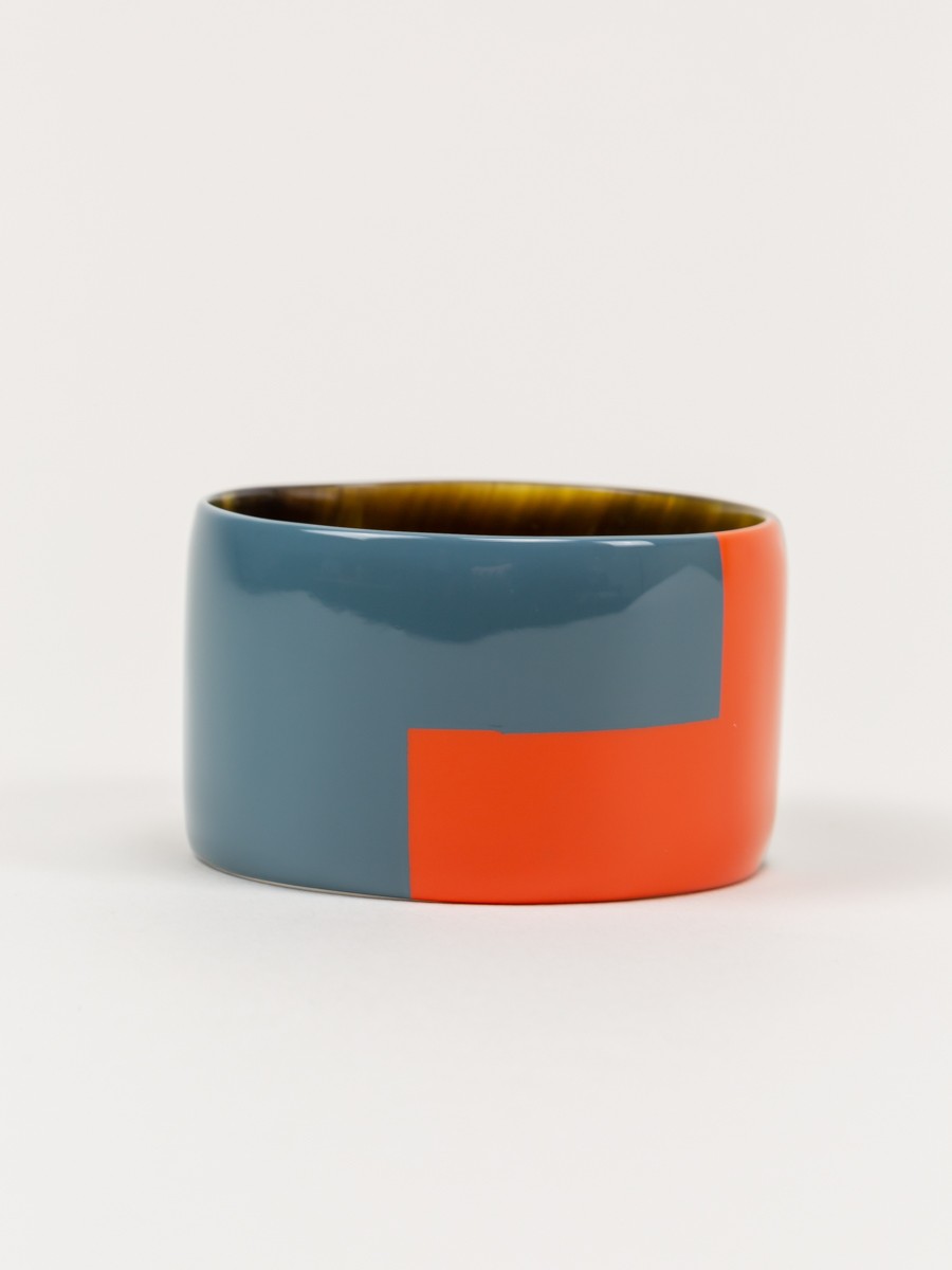 Broad orange and blue gray coffee lacquered bracelet in Size M