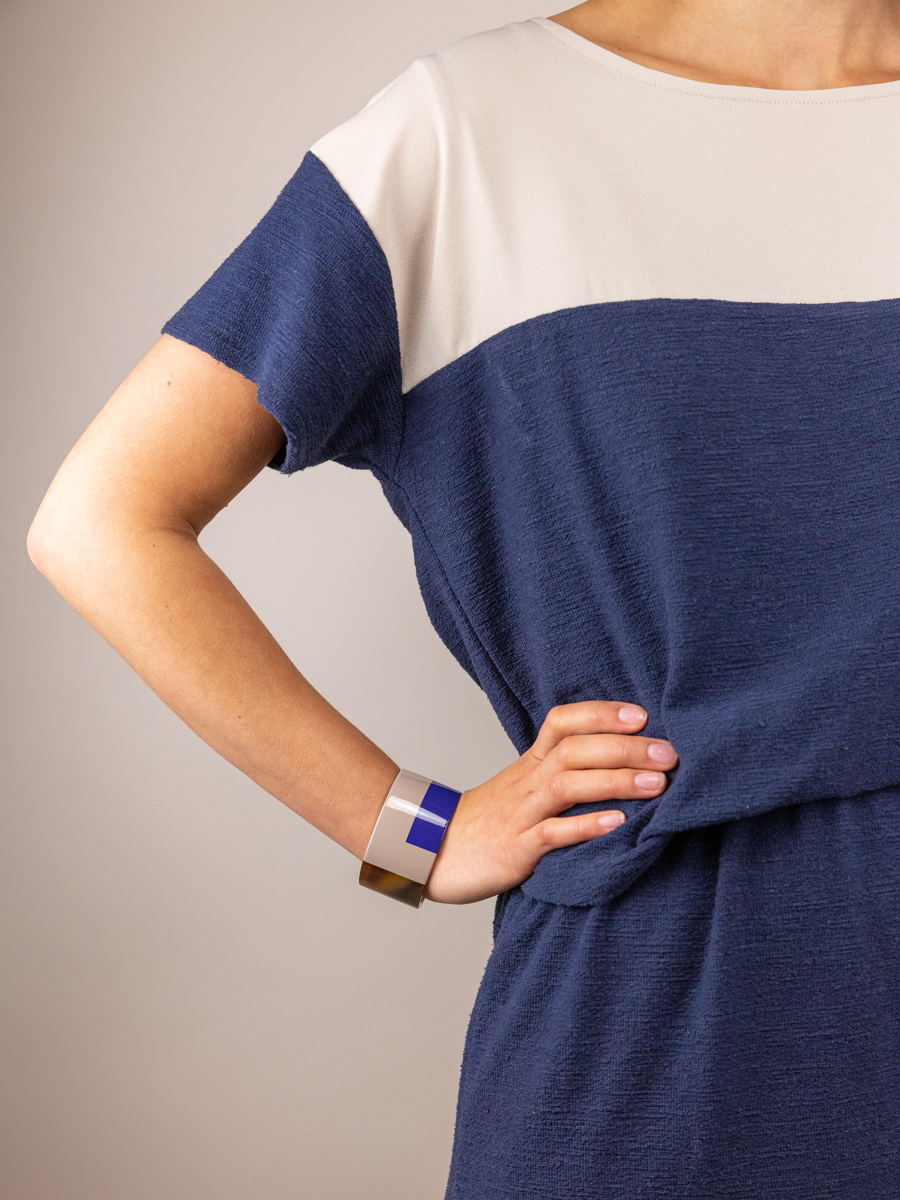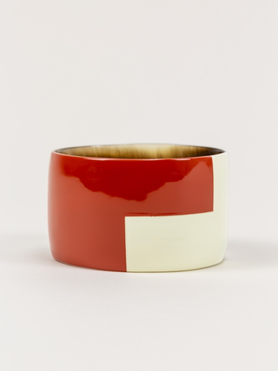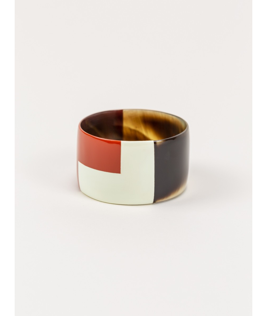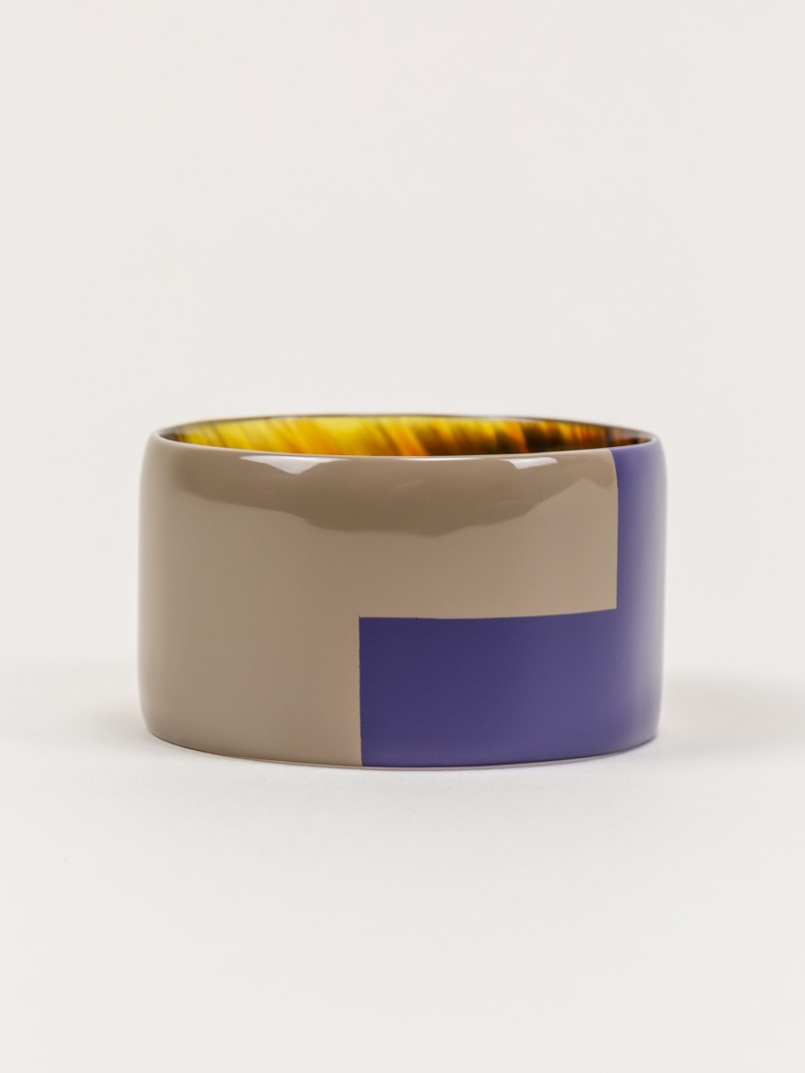 Broad orange and blue gray coffee lacquered bracelet in Size M