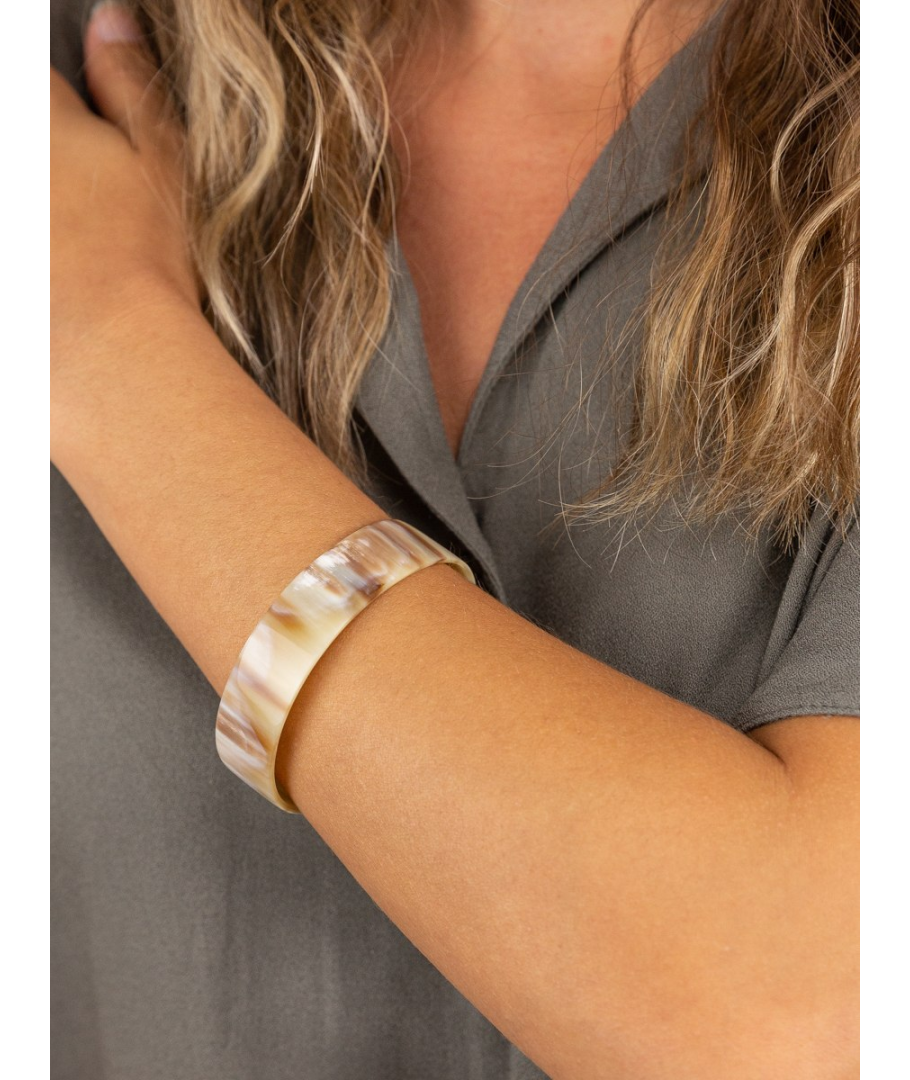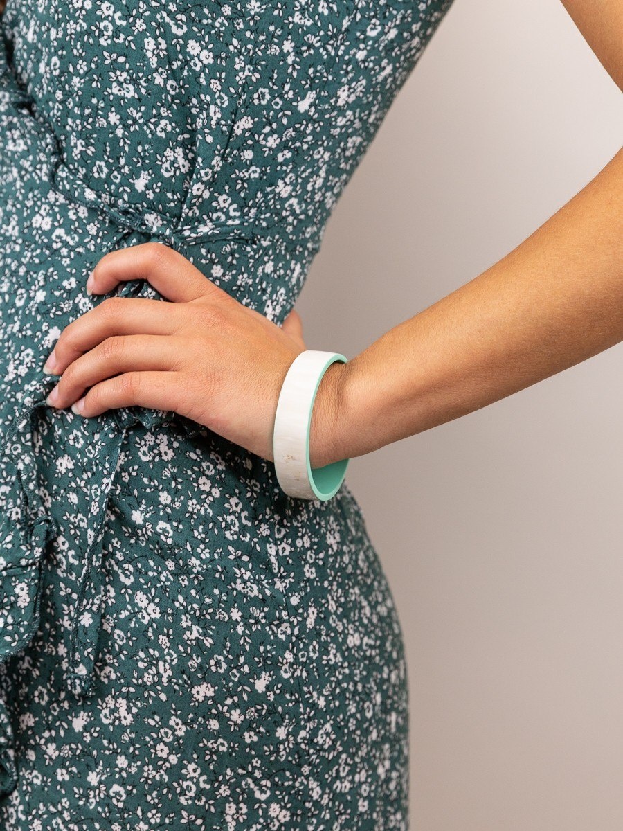 Bandeau medium bracelet in blond horn and mint green lacquer in Size M