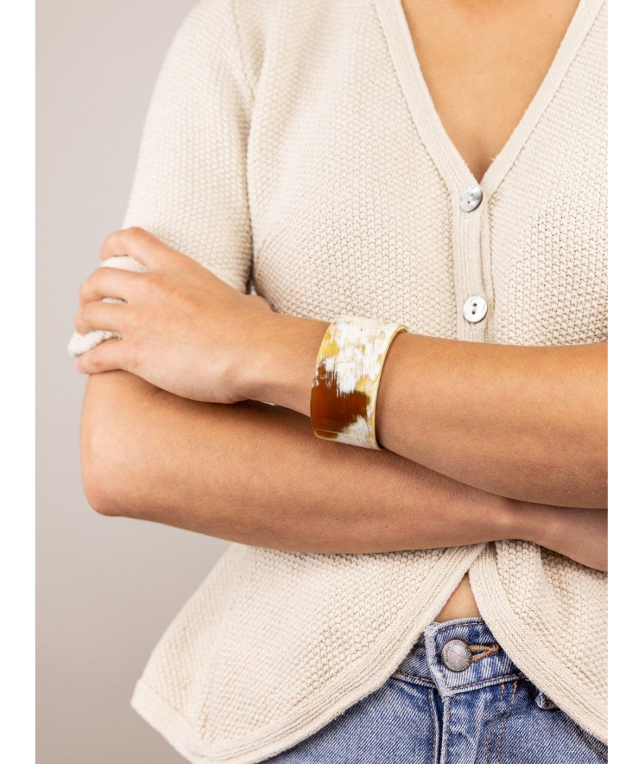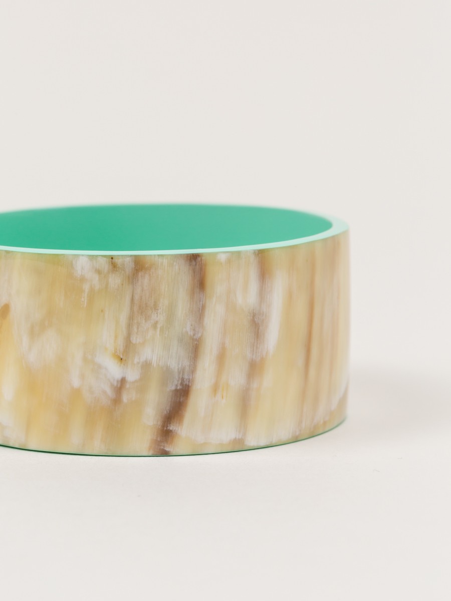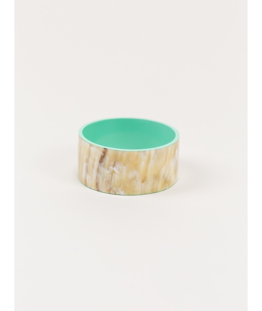 Bandeau wide bracelet in blond horn and mint green lacquer in Size M