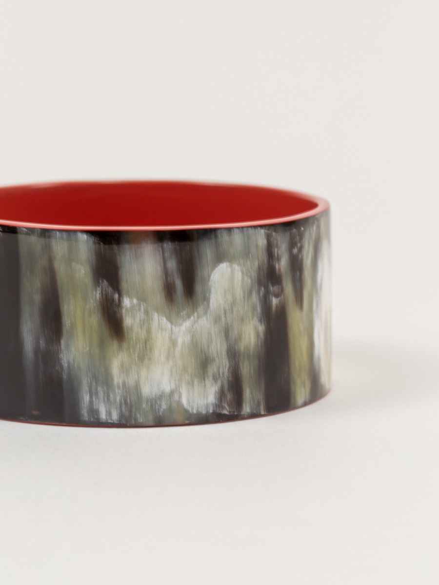 - Blond African zebu horn and lacquer