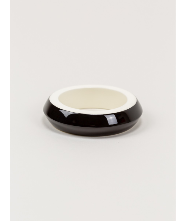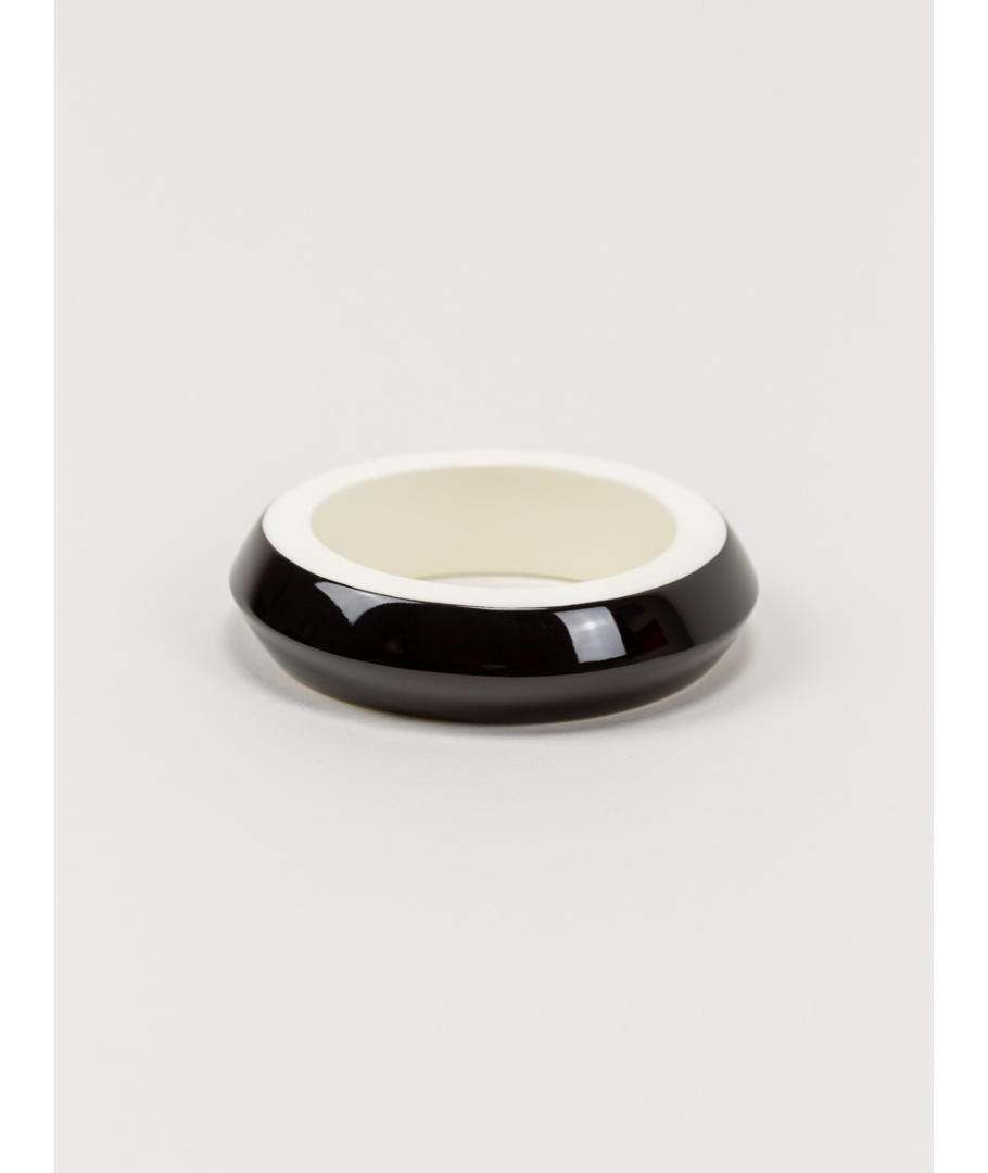 Bracelet Saturne en bois laqué extérieur noir intérieur ivoire taille S