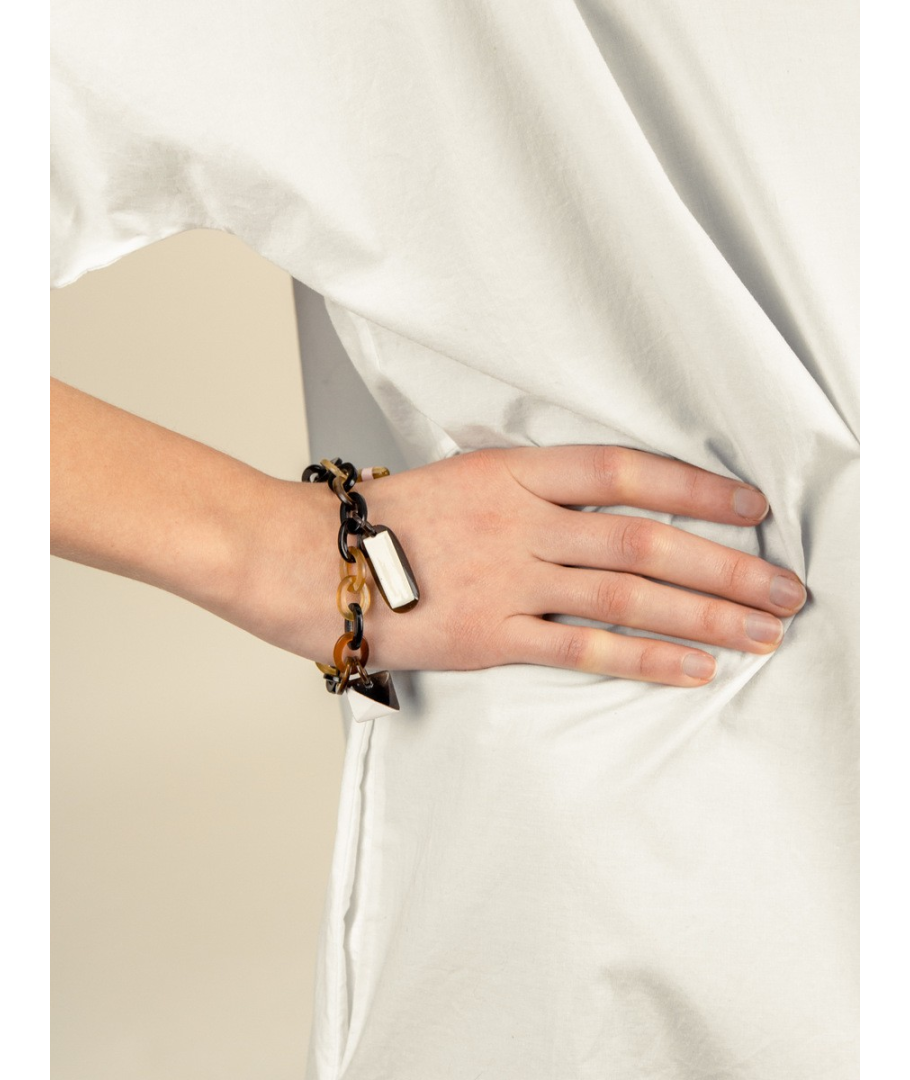 Bracelet chaîne à breloques en sabot et laque tricolore
