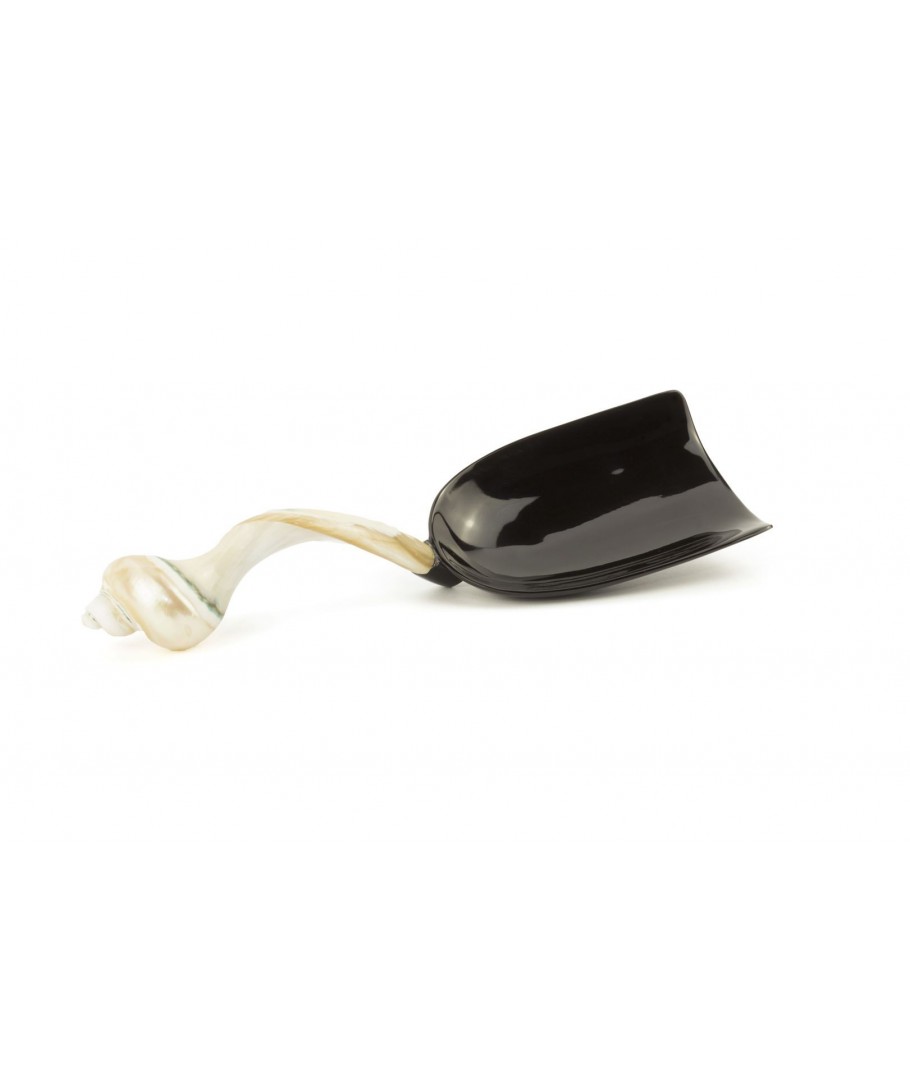 Cuillère à riz ovale manche escargot en corne noire et nacre
