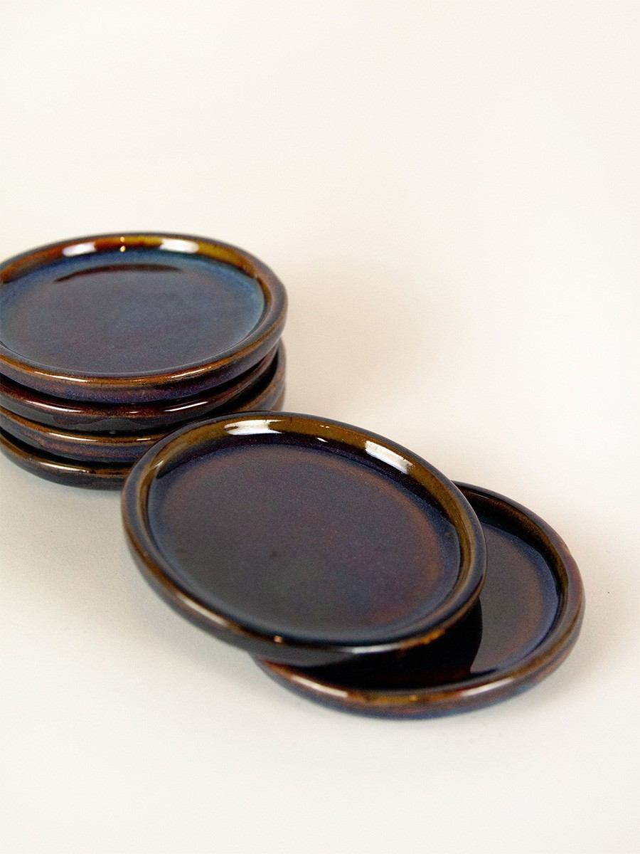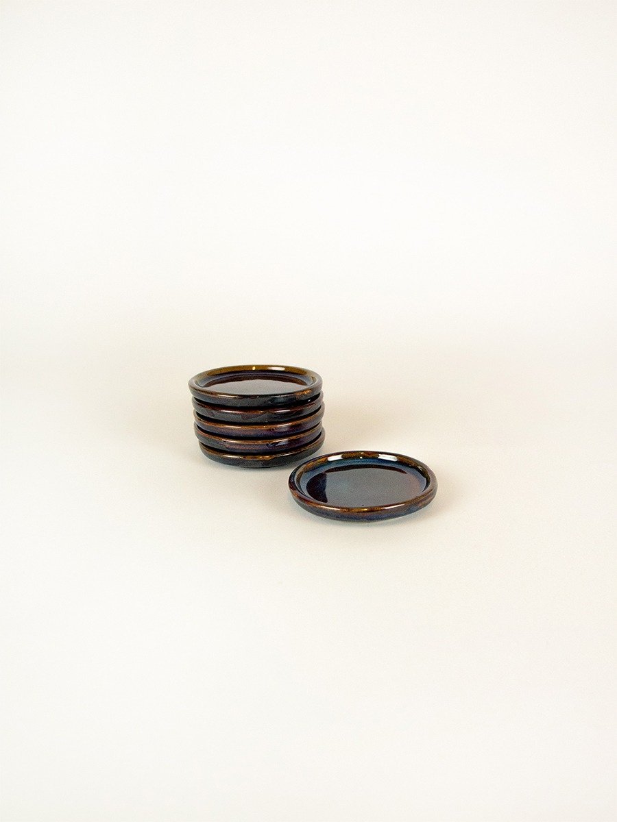 Set of 6 small Hoa Bien blue ocher ceramic plates