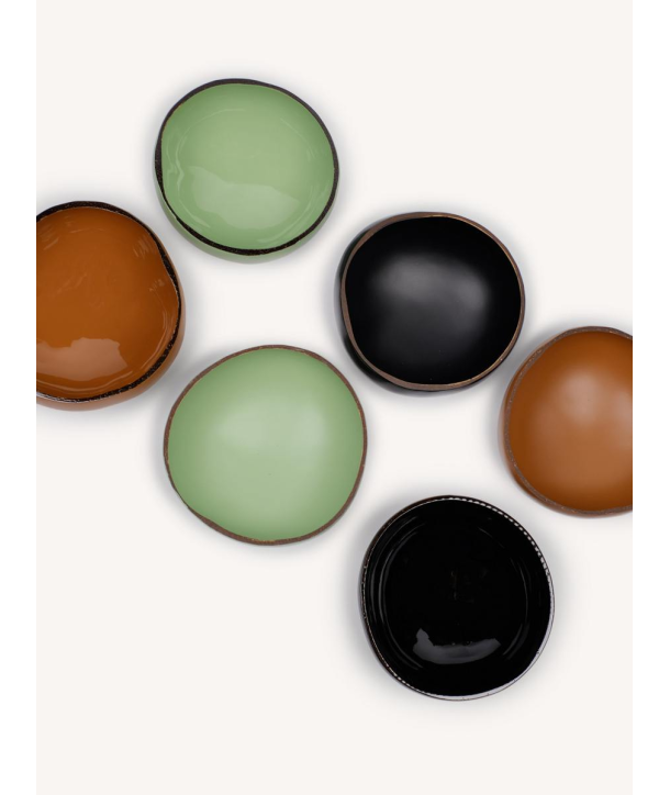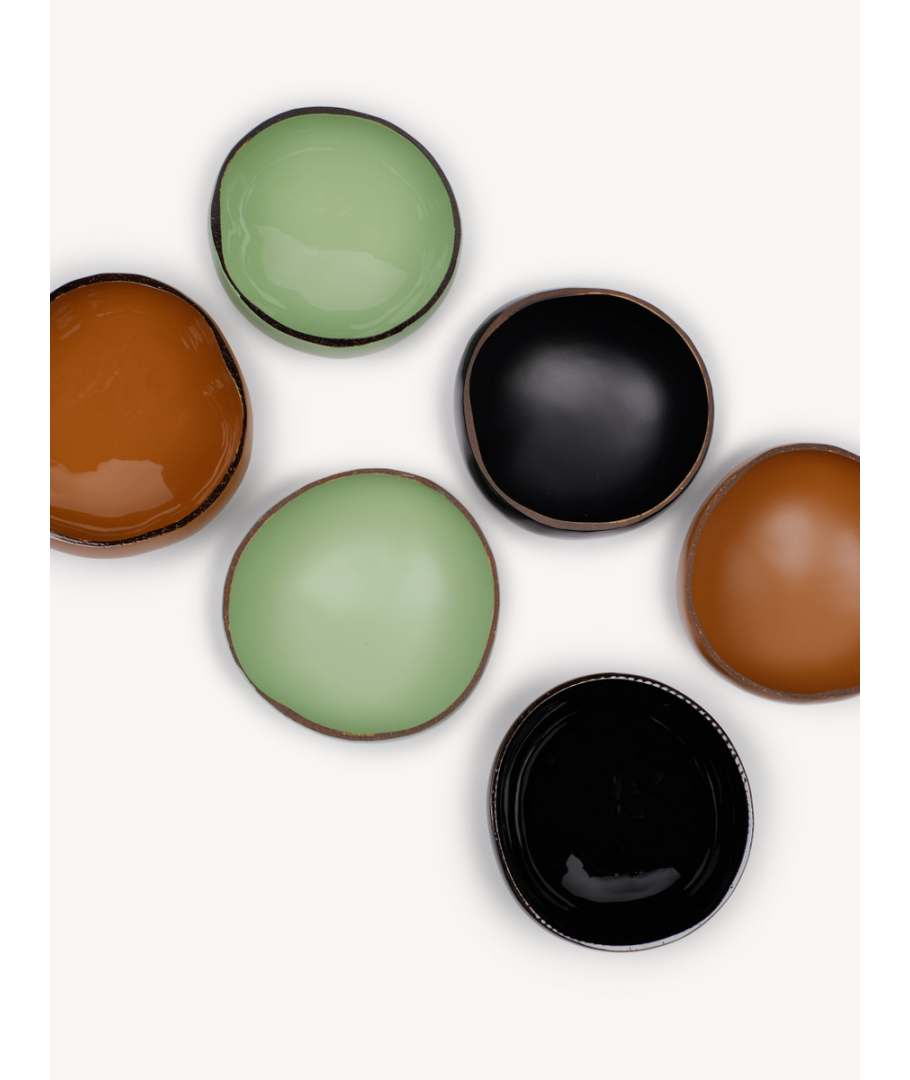 Set de 6 bols laqués 2 Jade 2 Tabac 2 Noir