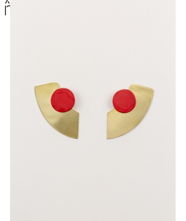 Boucles d'oreilles 2 parties demi rond en laiton et pendant laque rouge