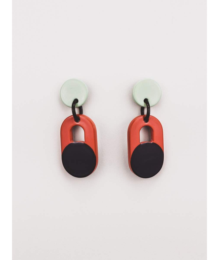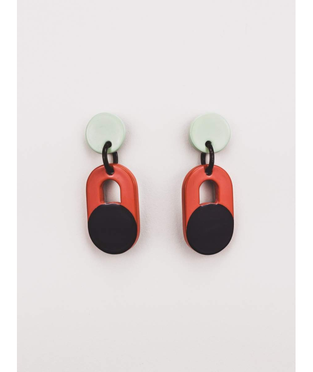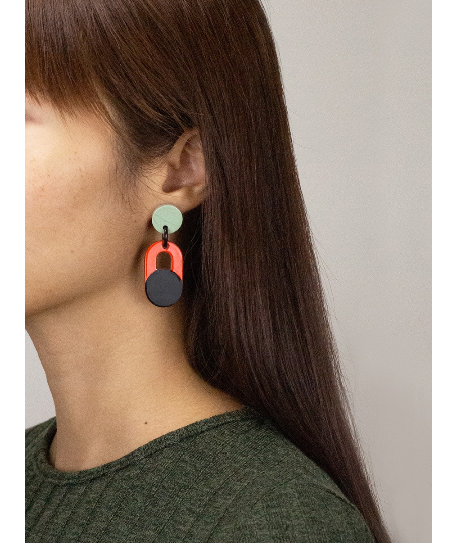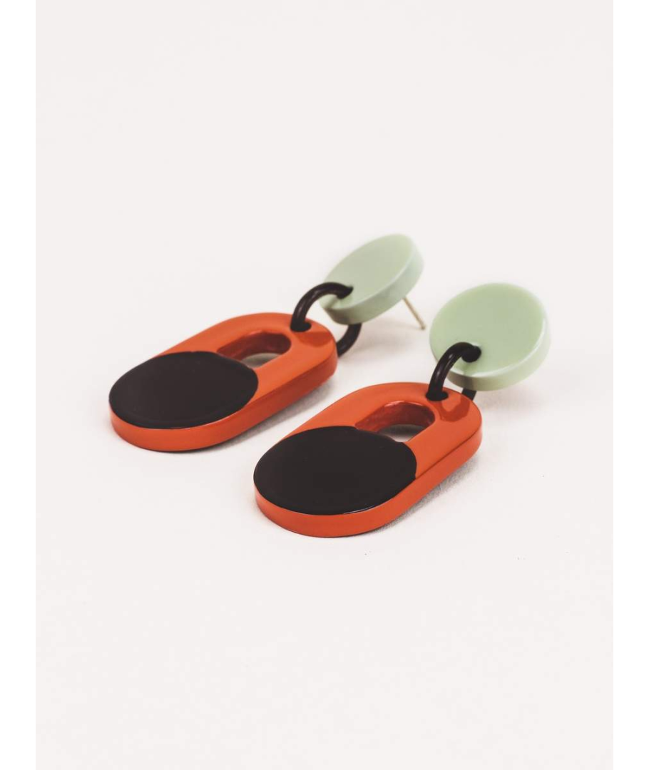 Boucles d'oreilles Ariane en corne noire et laque orange et verte