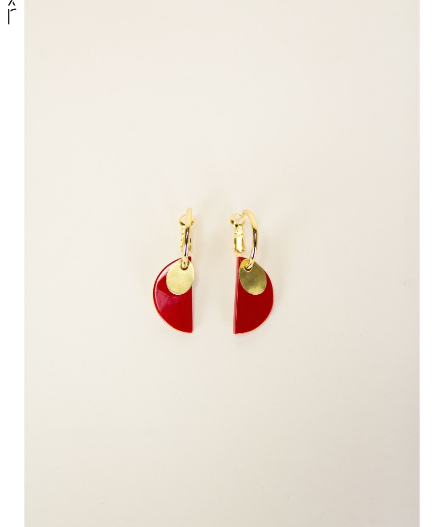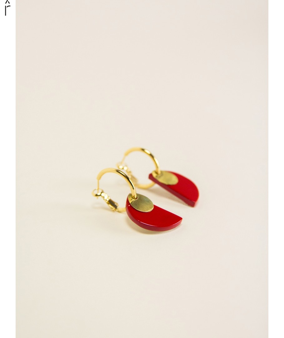 Croisant brass hoop earrings in 2 parts with red lacquered horn
