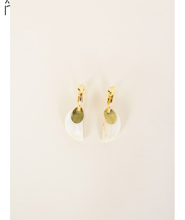 Boucles d'oreilles créoles 2 parties laiton et corne blonde africaine