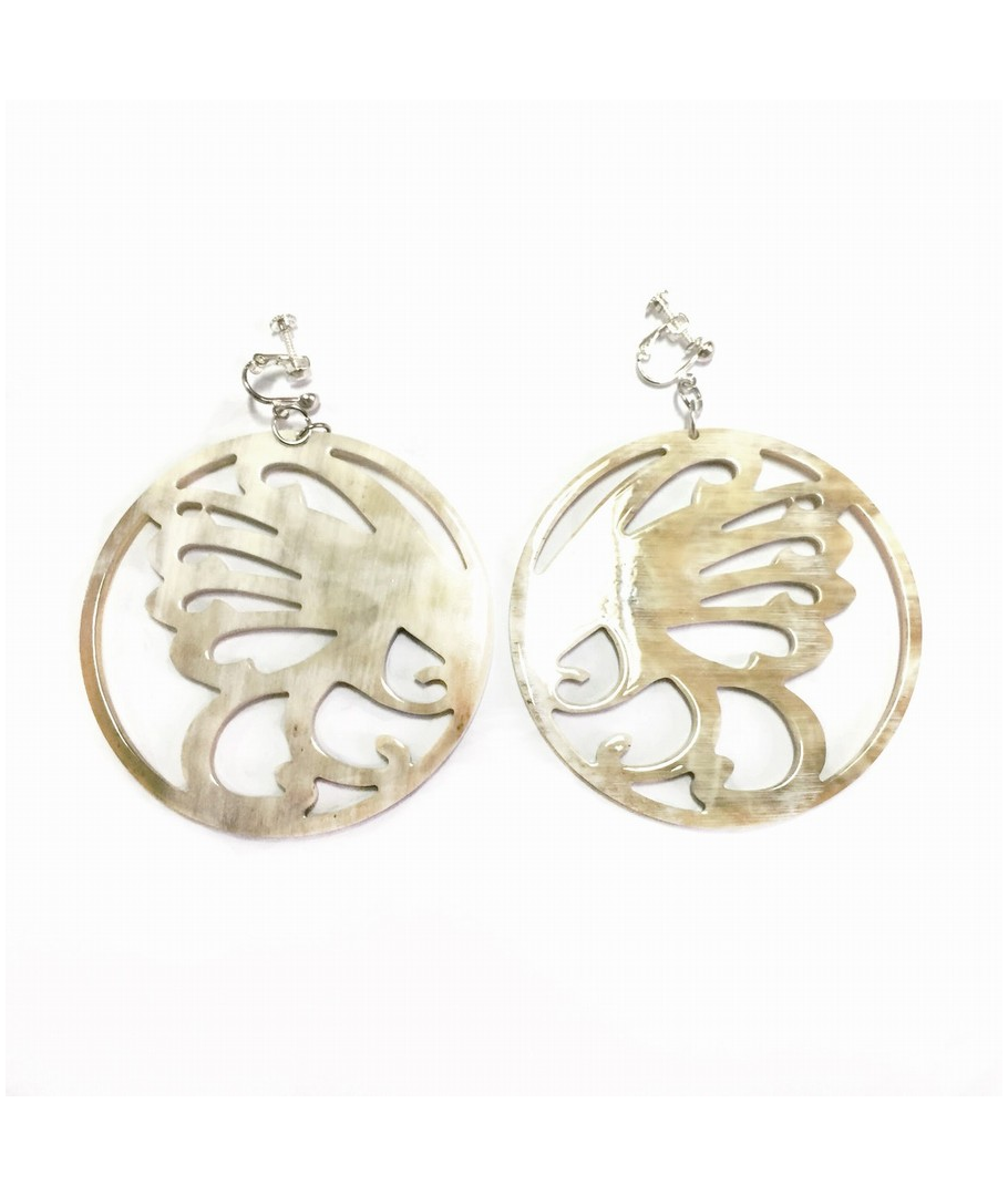 Boucle d'oreille clips à visser ronde dentelle en corne blonde africaine