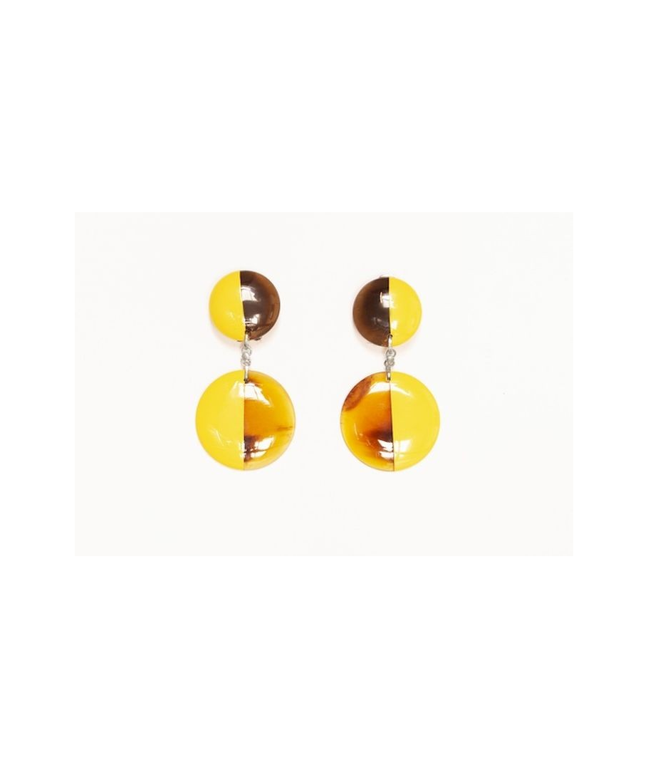 Boucles d'oreilles clips double ronds en sabot et laque jaune