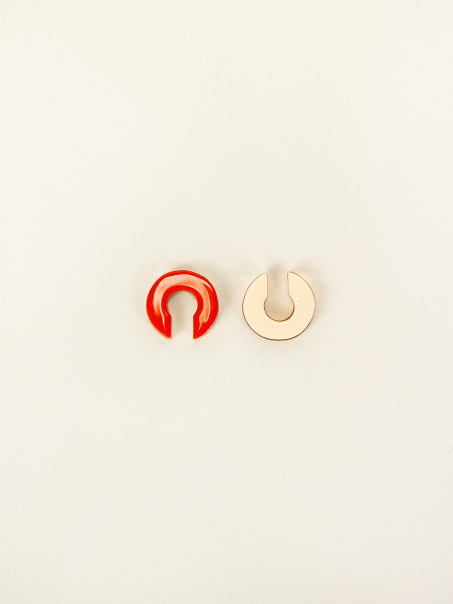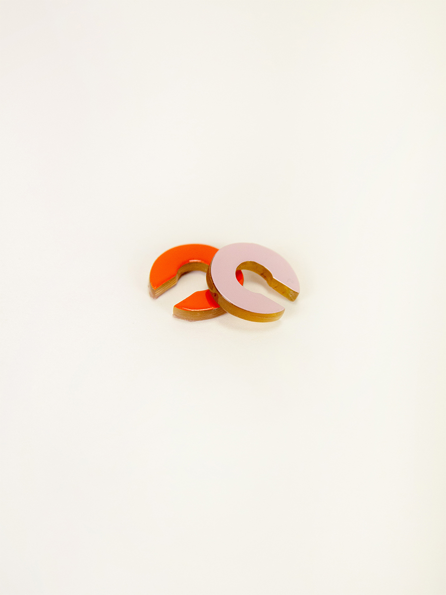 Set of 2 flat earcuffs in two-tone lacquered horn (orange-pink and pink-ivory)