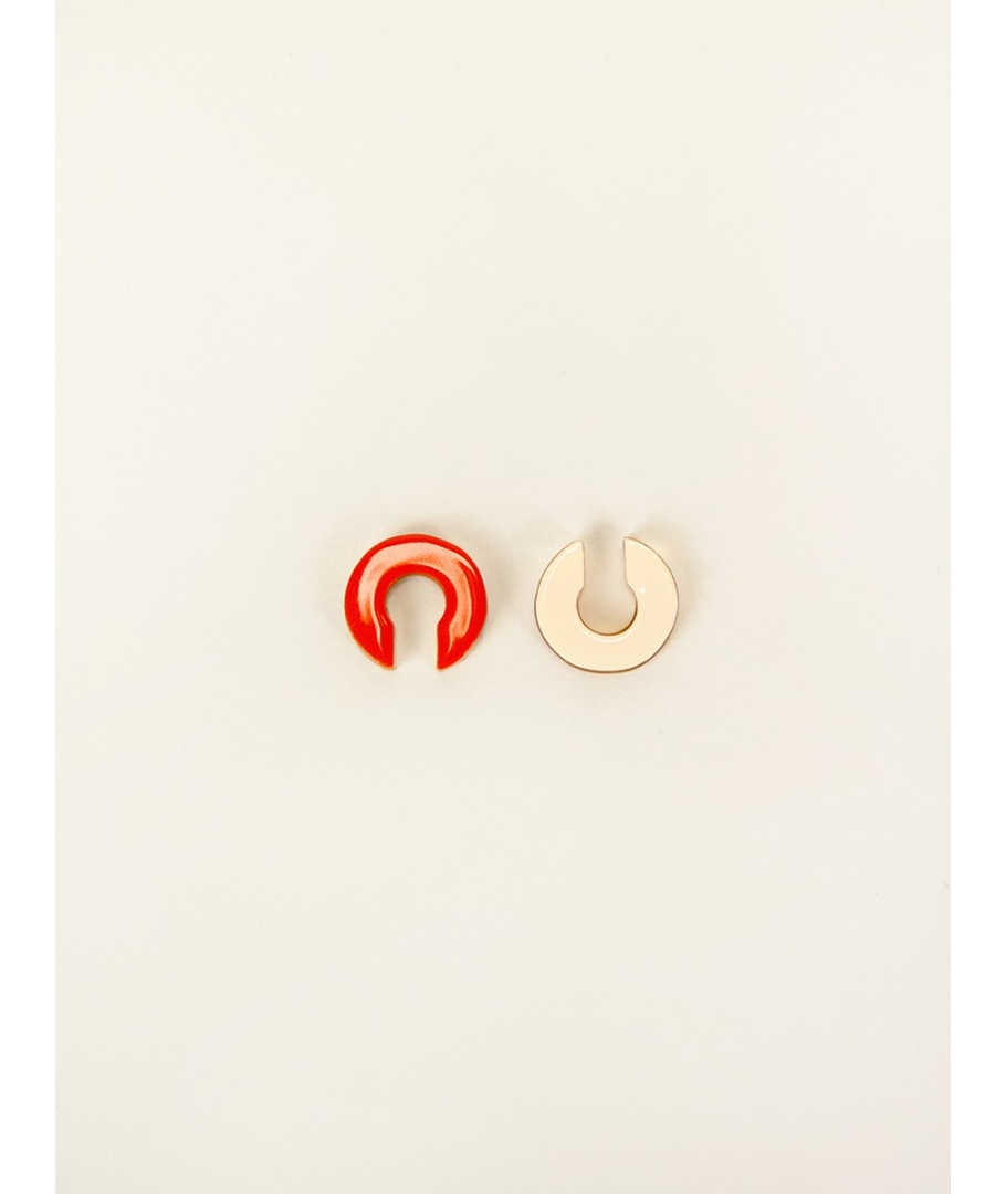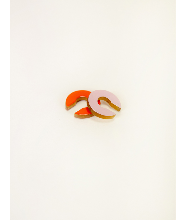 Set de 2 earcuffs plats en corne laquée bicolore (orange-rose et rose-ivoire)
