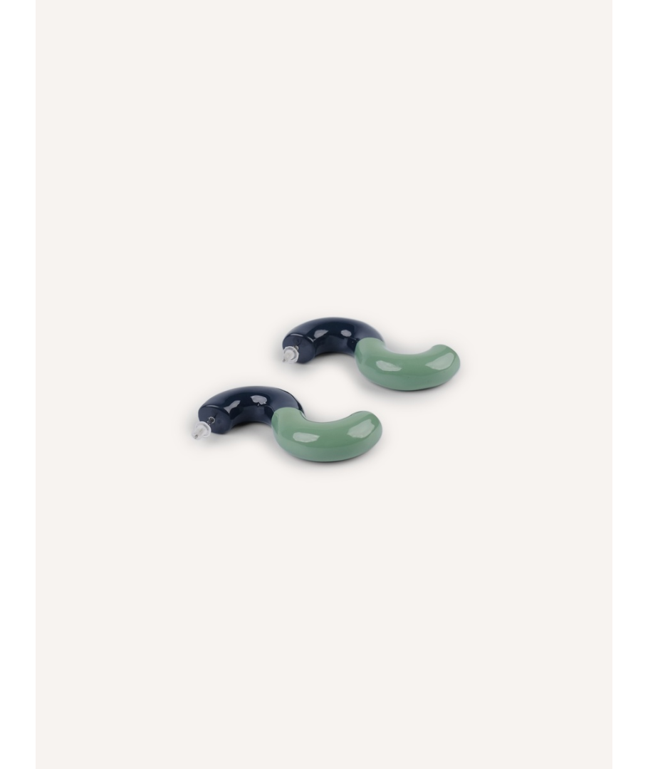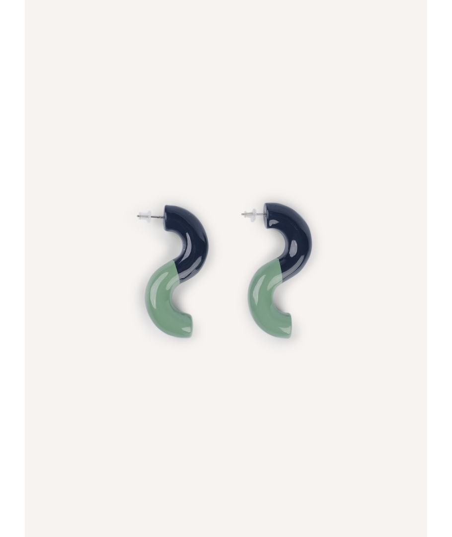 Boucles d'oreilles à tiges forme S en bois et laque vert et gris