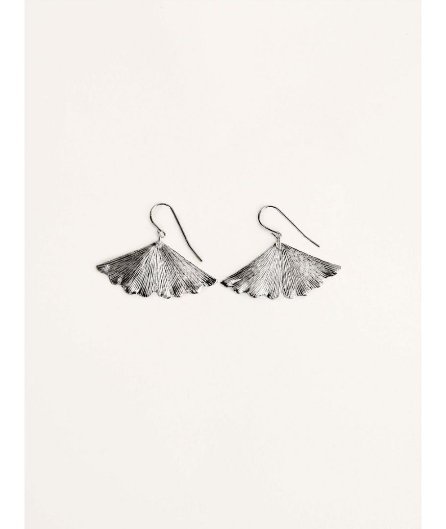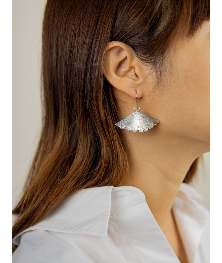 Boucles d'oreilles Gingko en laiton plaqué argent (à croche)