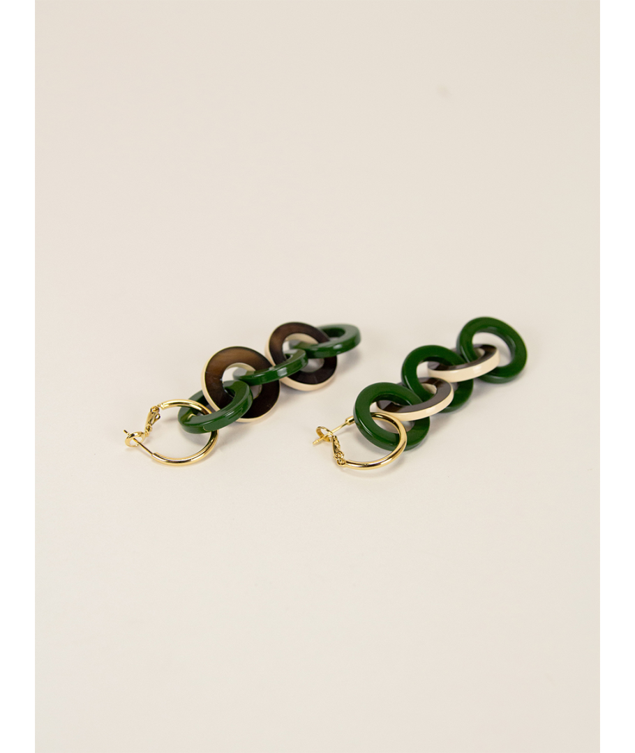 Boucles d'oreilles 5 anneaux laqués beige et vert kaki