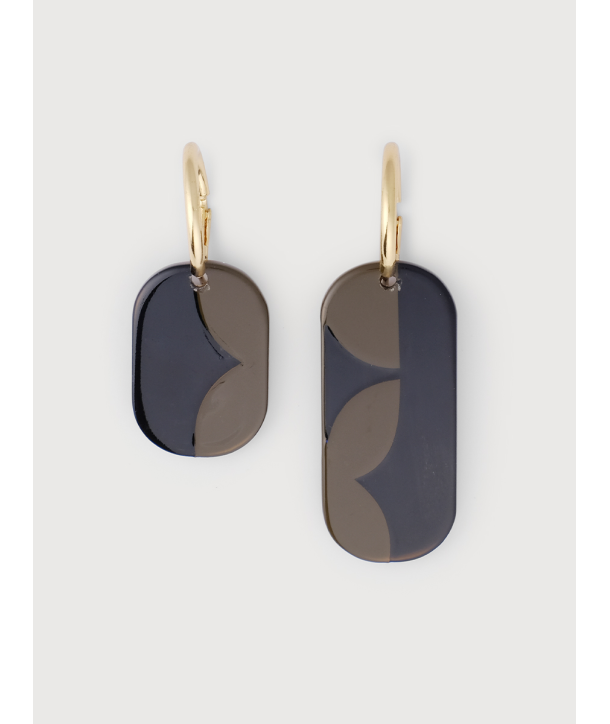 Mini Créoles Nymphe en corne noire et laque Kaki