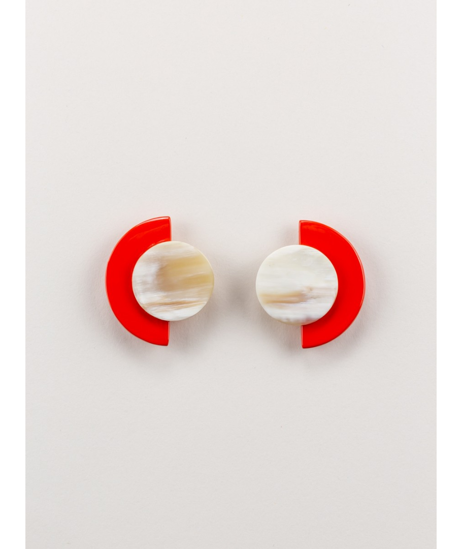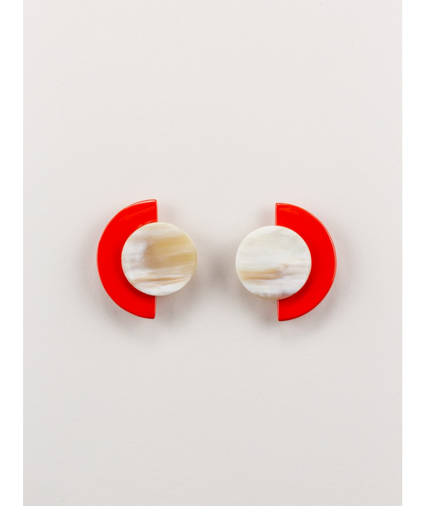 Boucles d'oreilles Terrasse en corne blonde et laque orange