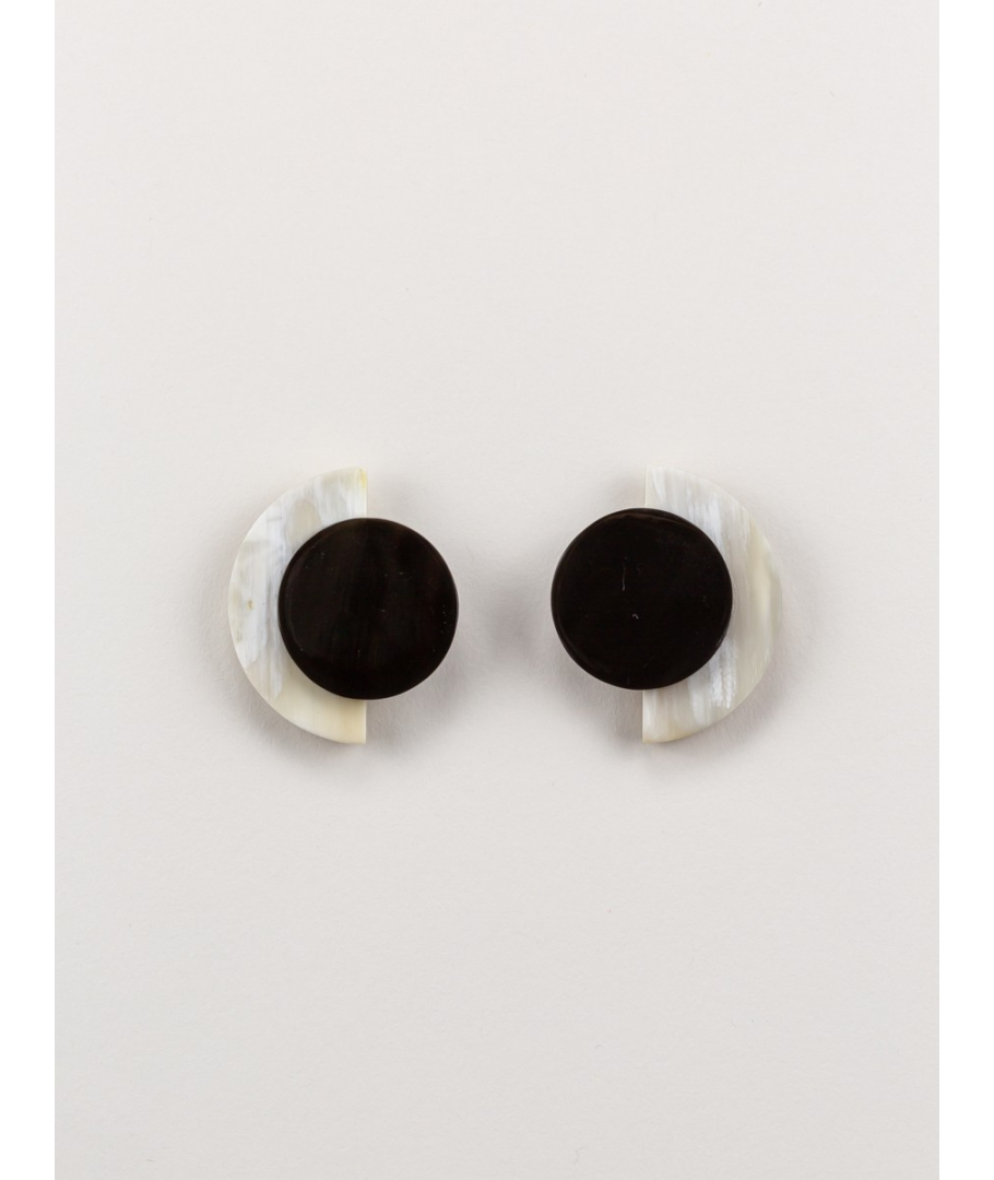 Boucles d'oreilles à clips Terrasse en corne blonde et noire