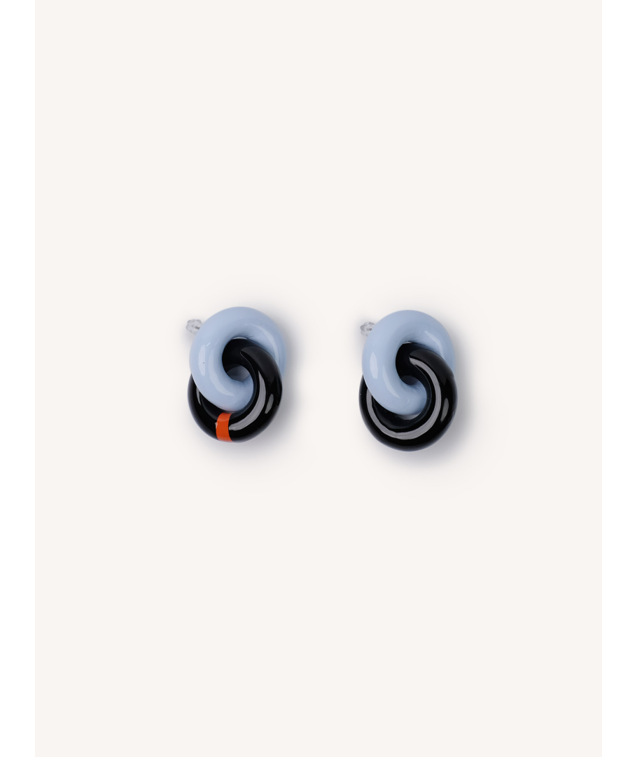 Boucles d'oreilles à tiges double rond en bois laqué bleu clair, bleu nuit et orange