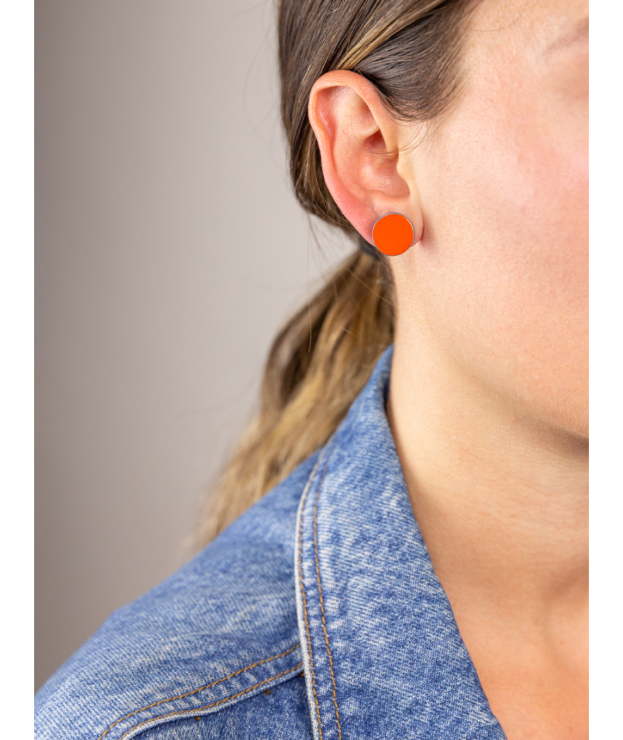 Boucles d'oreilles pastille laquée orange et gris-bleu