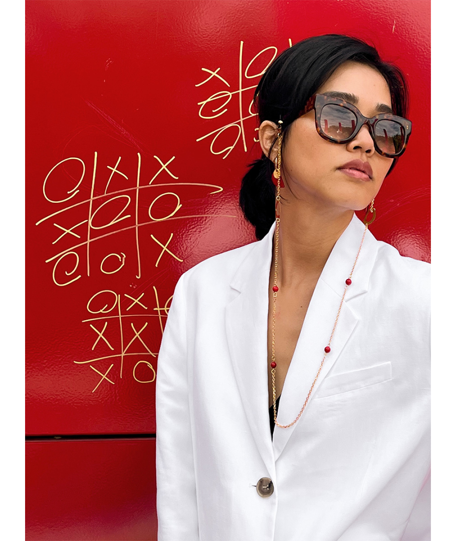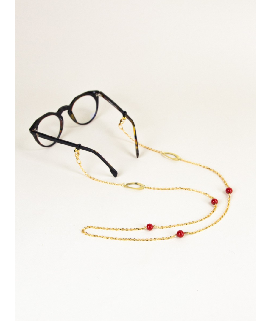 Chaîne à lunettes Maraca en laiton et laque rouge