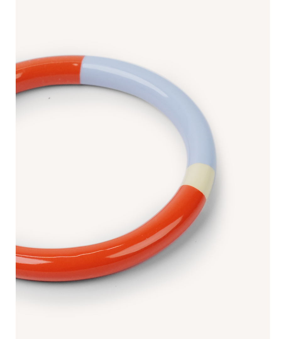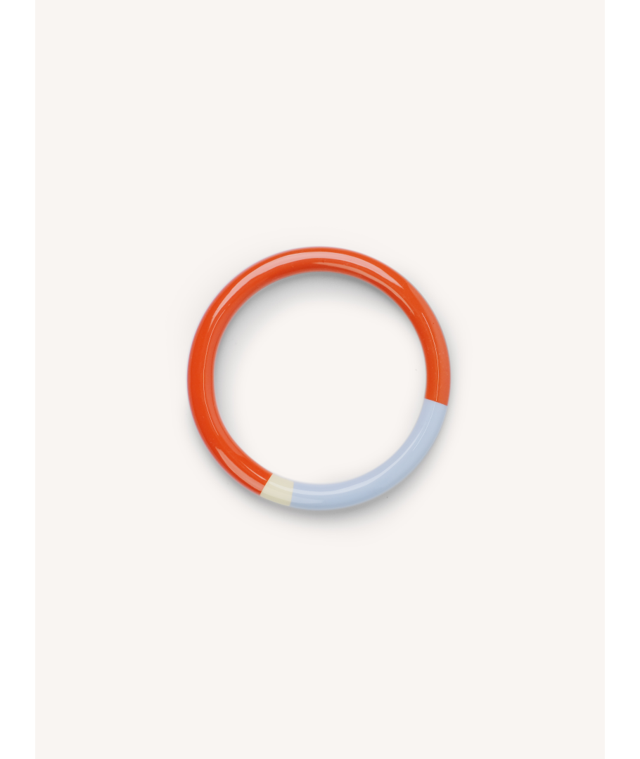 Jonc fin en bois laqué orange, bleu clair et sable, taille L