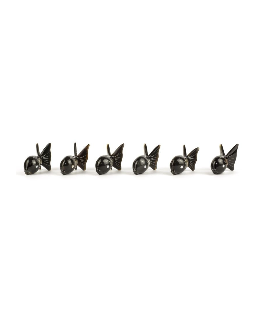 Set de 6 portes-couteaux poisson rond en corne noire unie