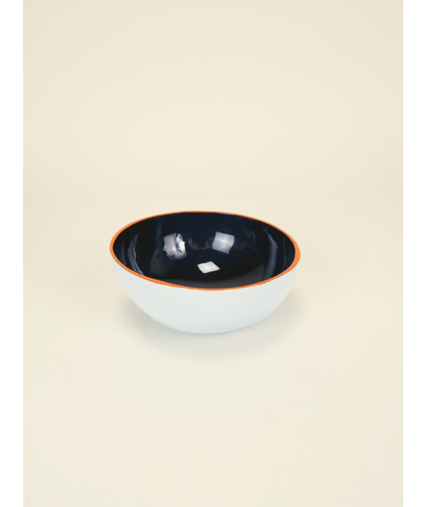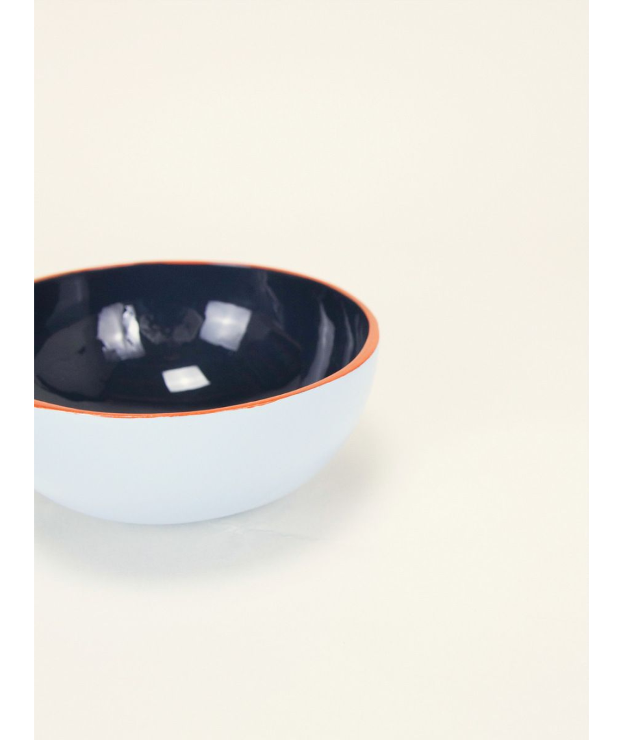 Coconut bowl lacquered in midnight blue, lavender blue and orange Ø12 cm