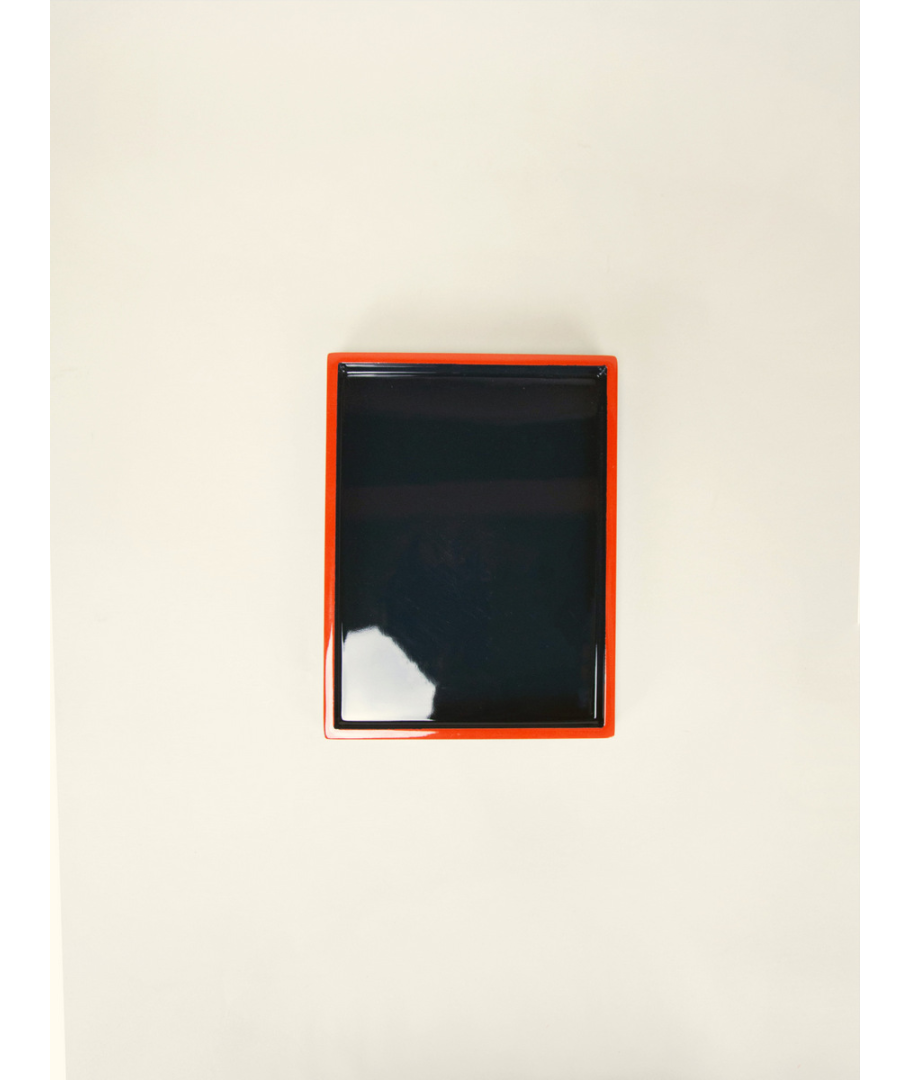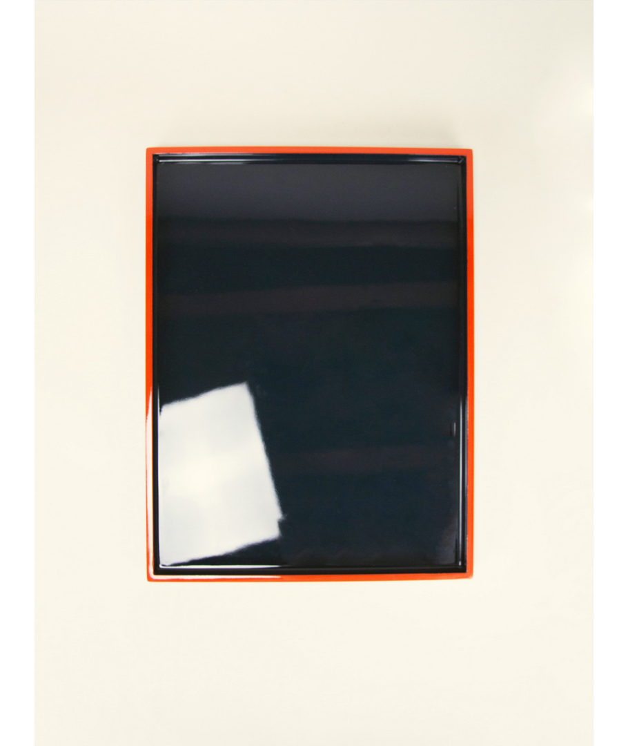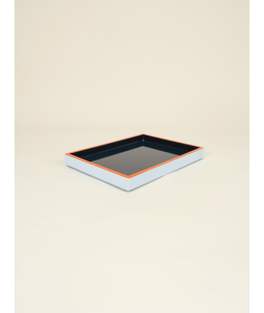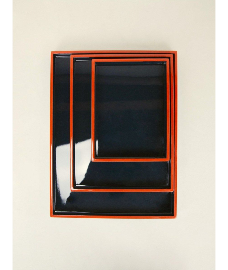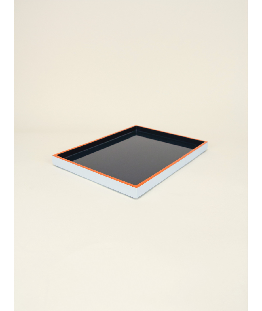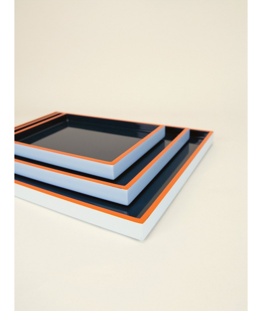 Set de 3 plateaux rectangulaire laqués bleu nuit, bleu lavande et orange