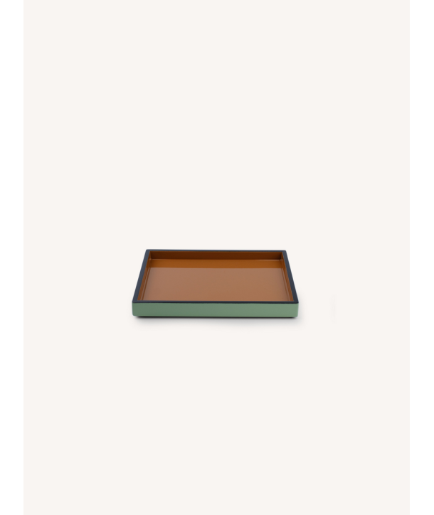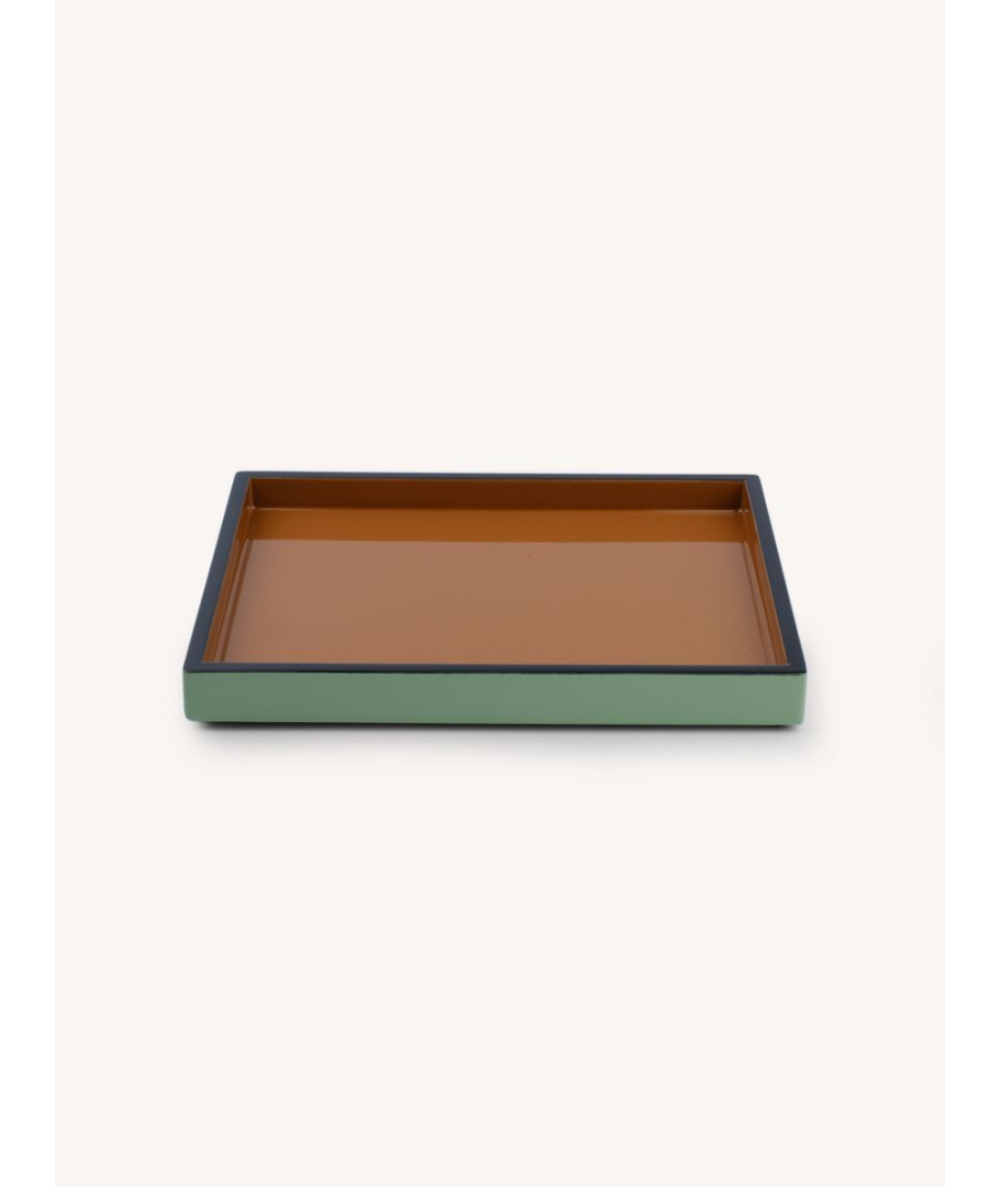 Set de 3 plateaux rectangulaire laqués tabac, jade et noir