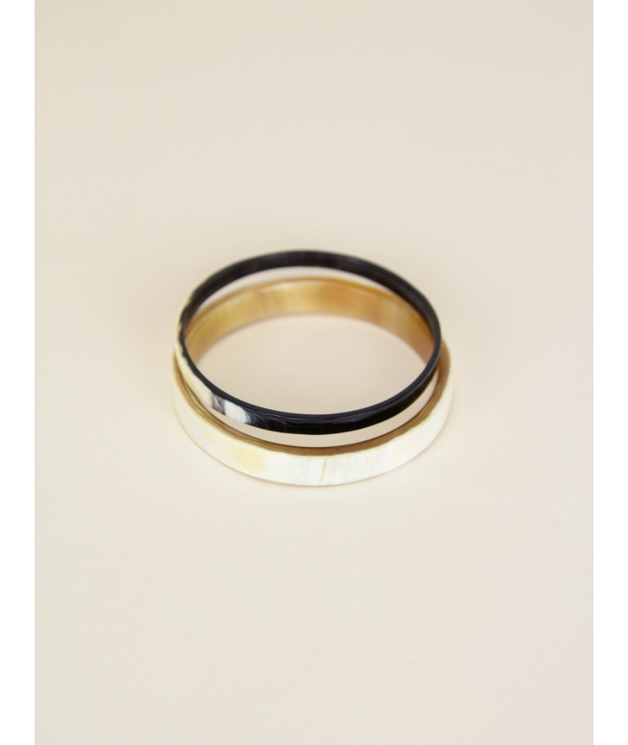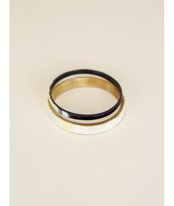Set de 2 joncs, bords droits, en corne Africaine blonde et noire taille L
