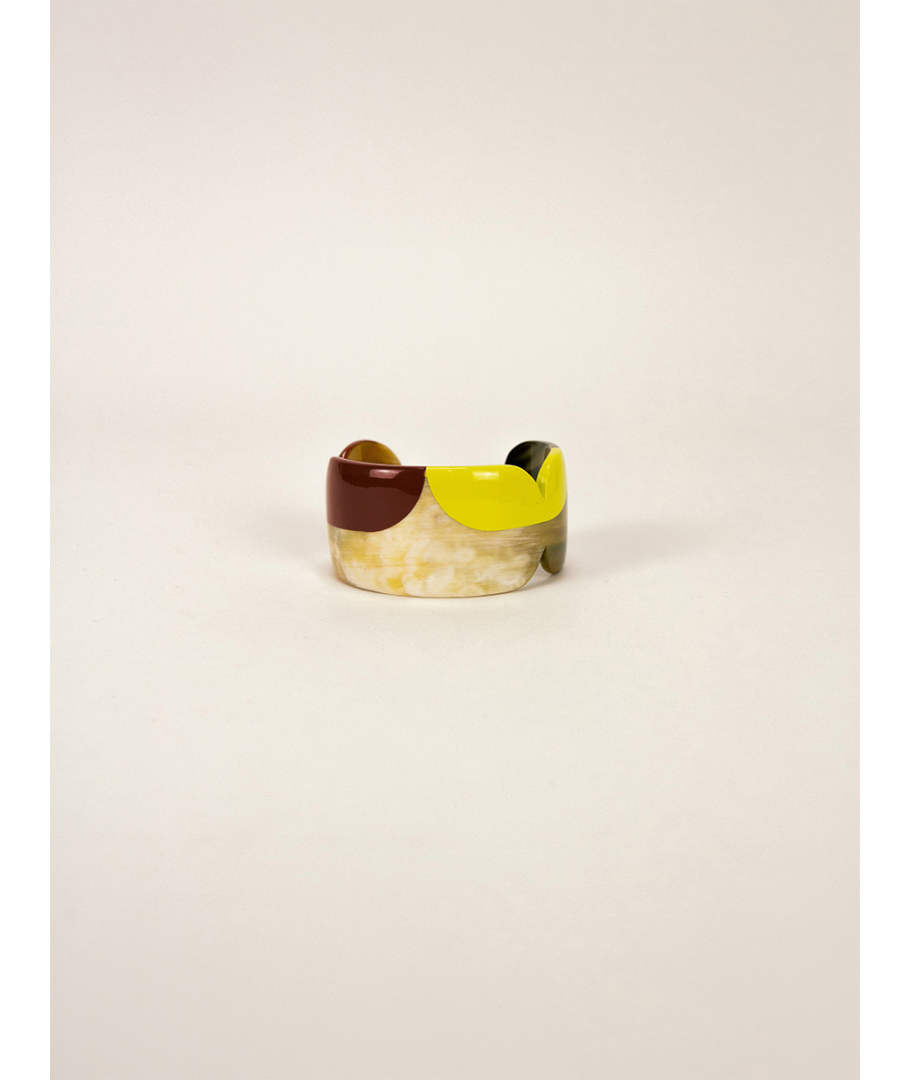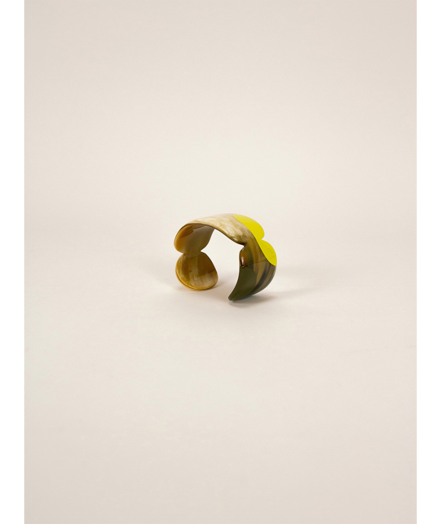 Manchette Nymphe en corne blonde et laque Lime, taille M