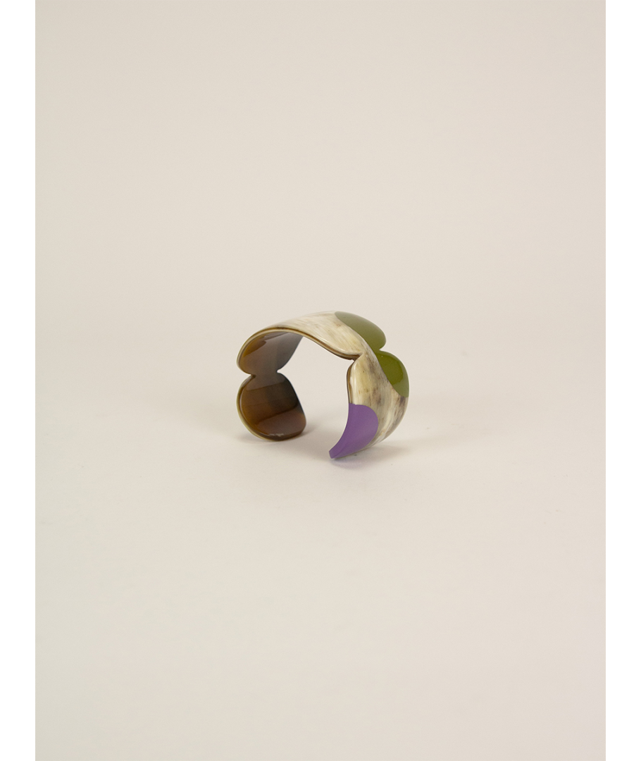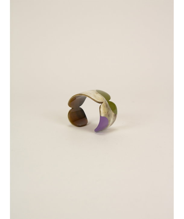 Manchette Nymphe en corne blonde et laque Parme taille S