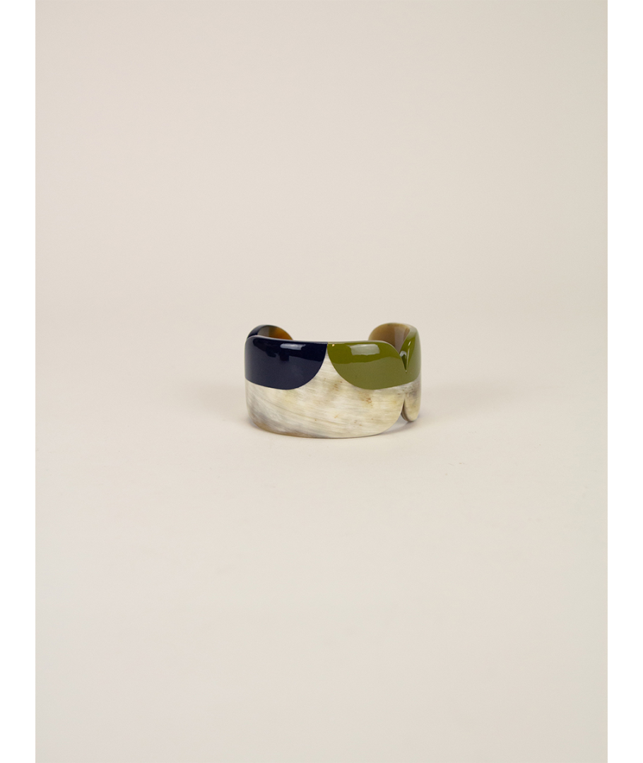 Manchette fine en bois laqué bleu nuit, bleu clair er orange, taille S