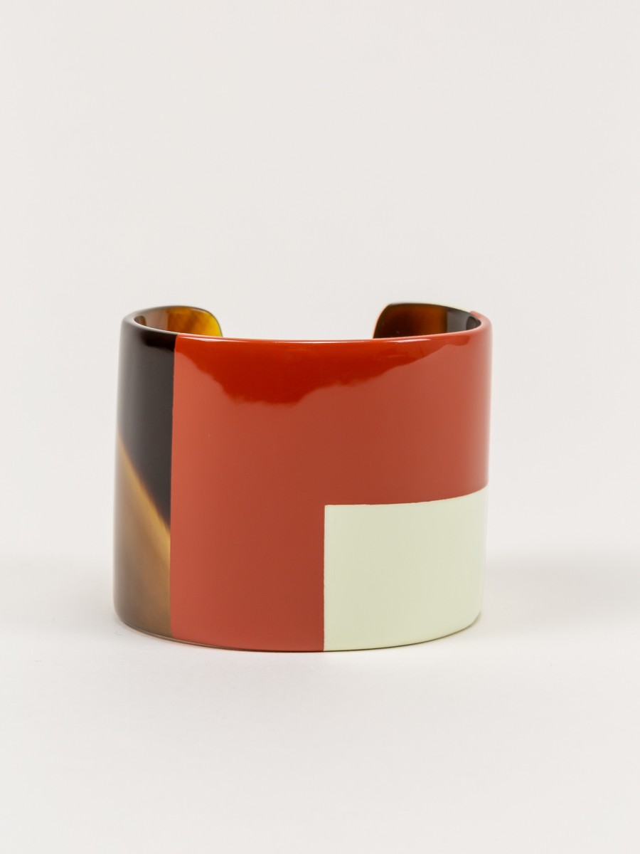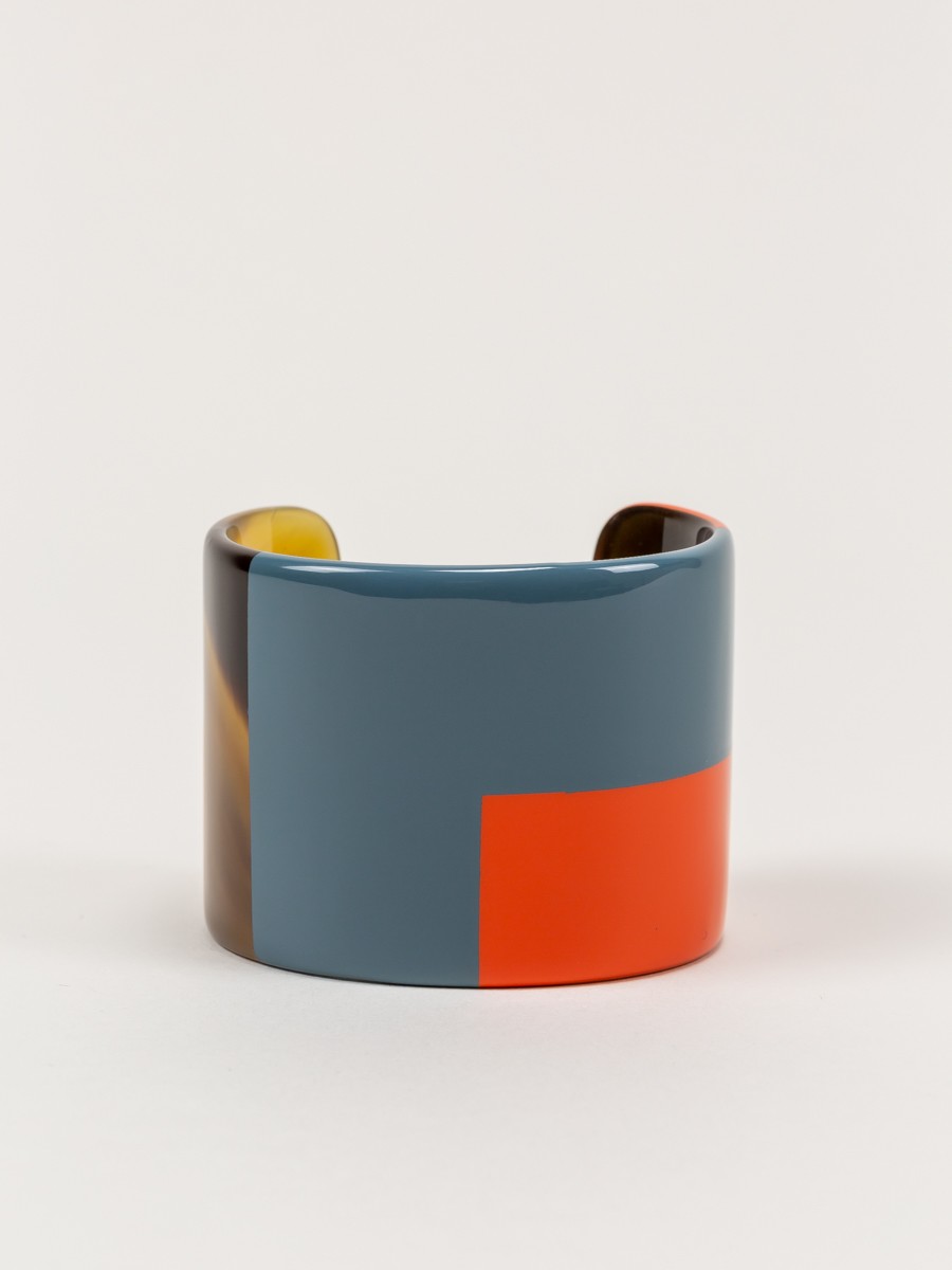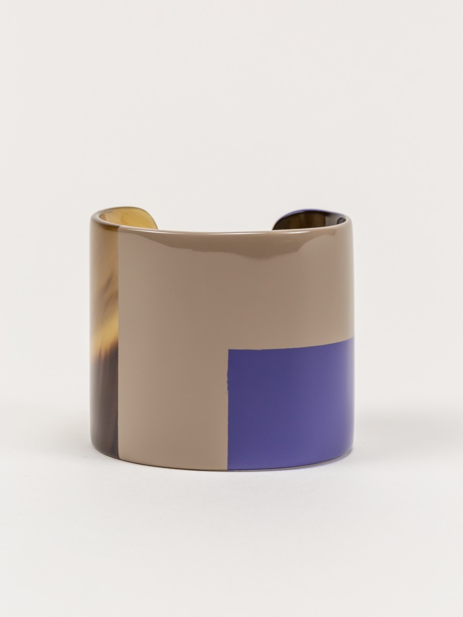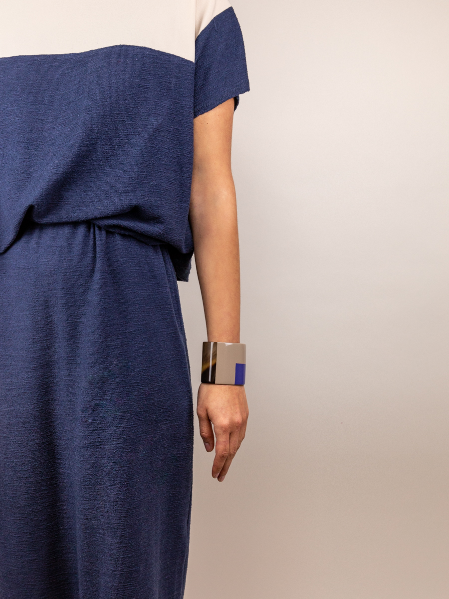 Manchette laquée bicolore bleu indigo et café crème taille M