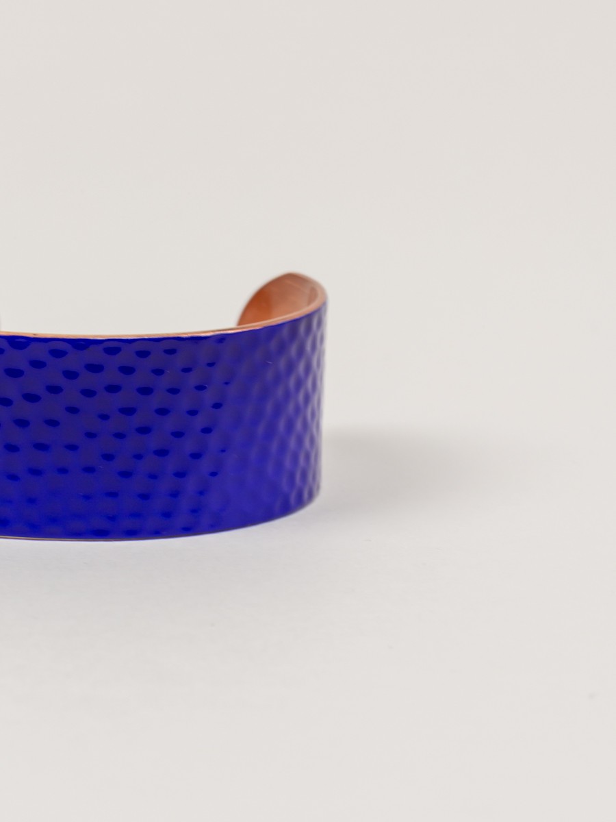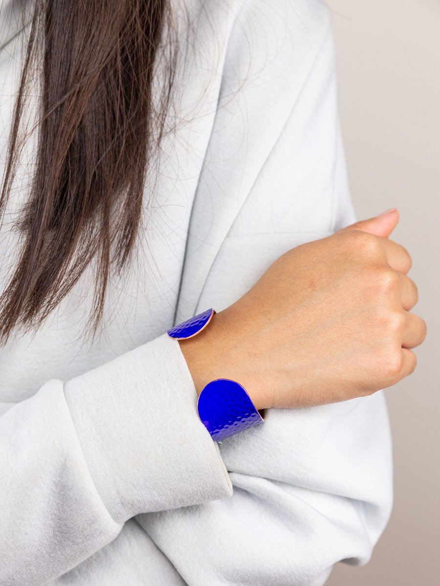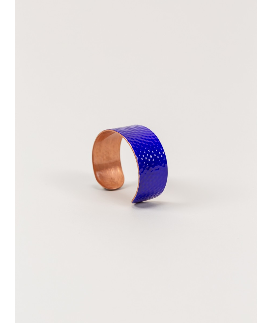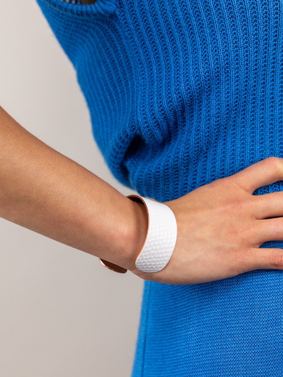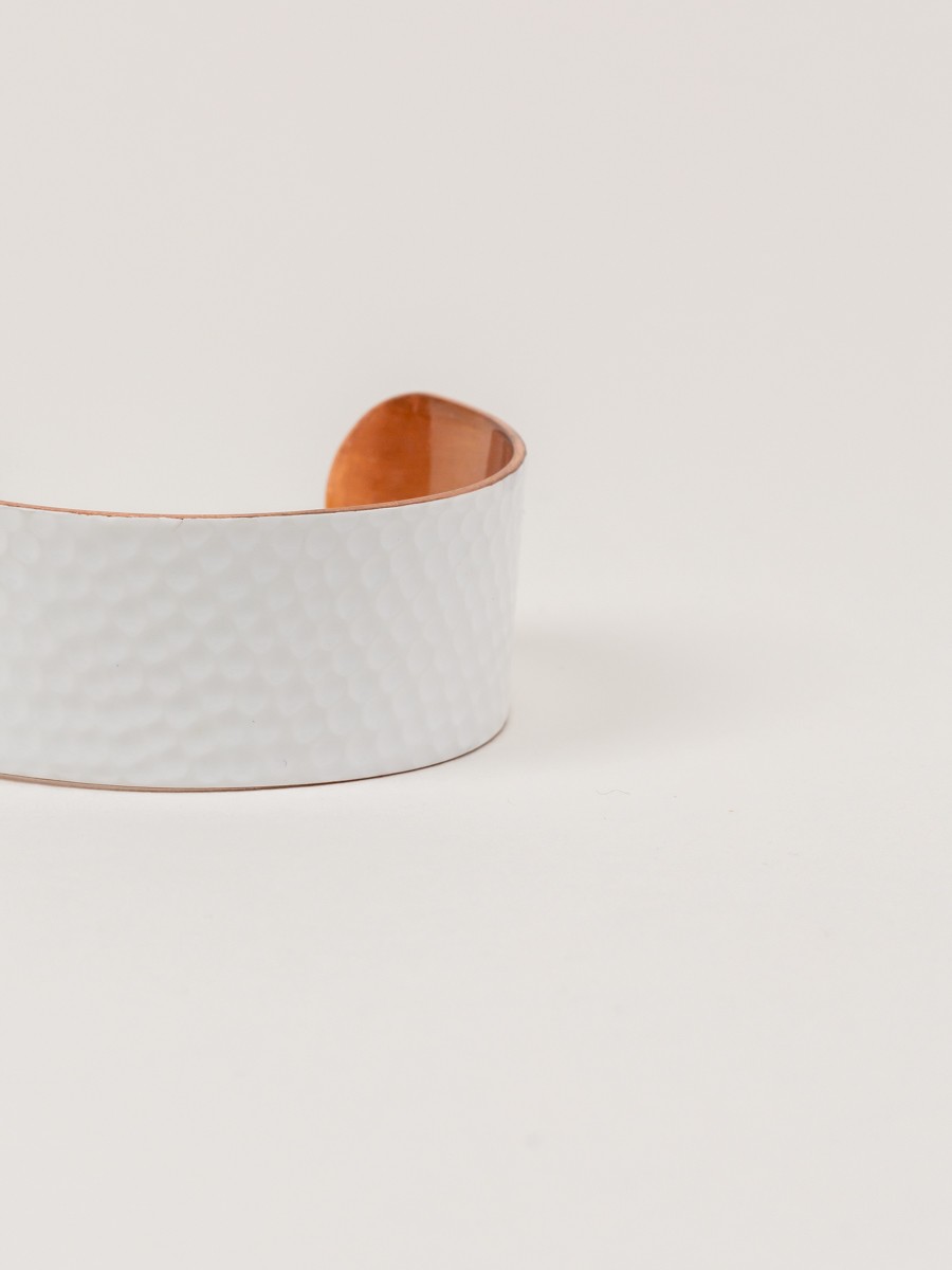 Hammered copper cuff bracelet with white lacquer in size S