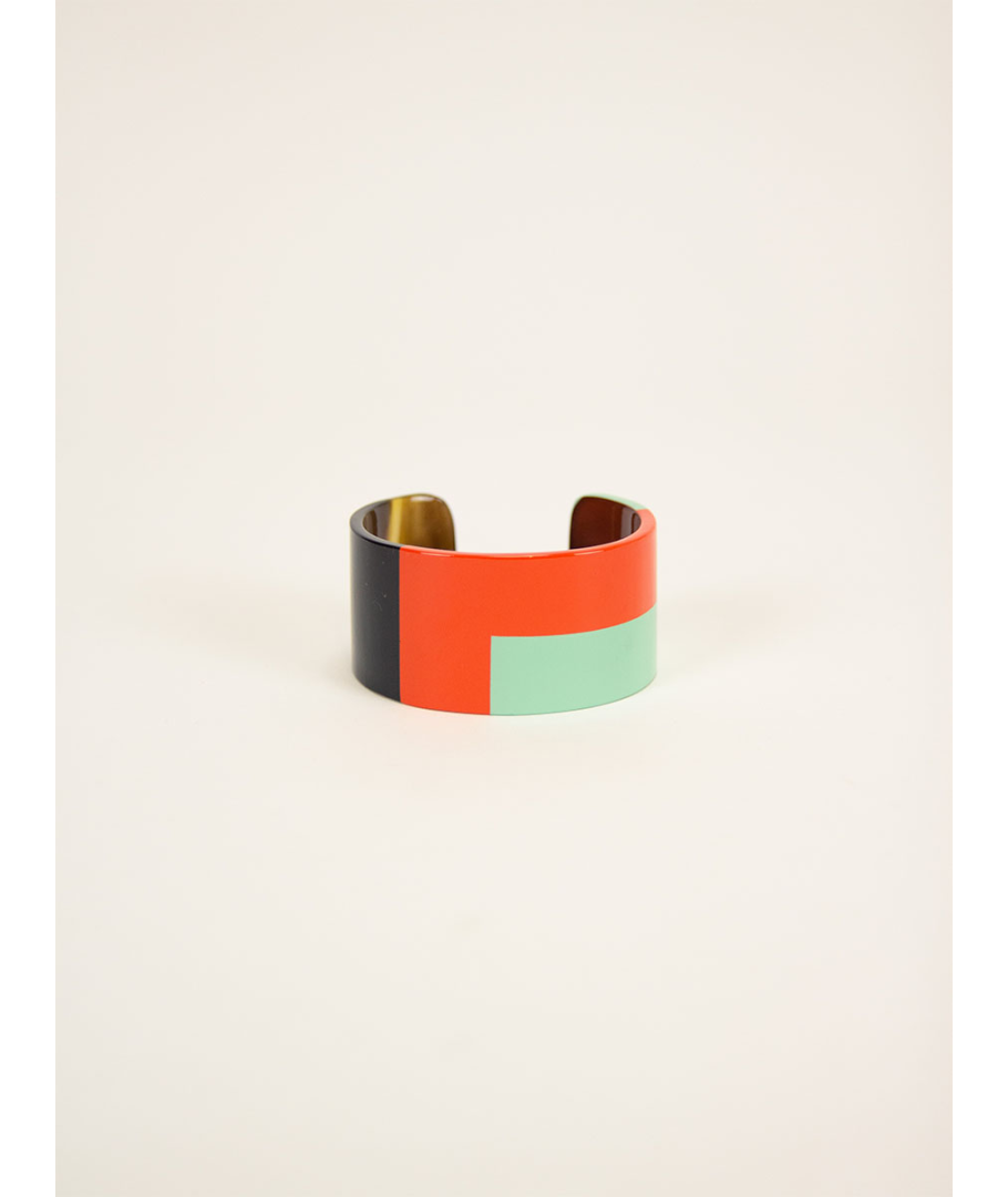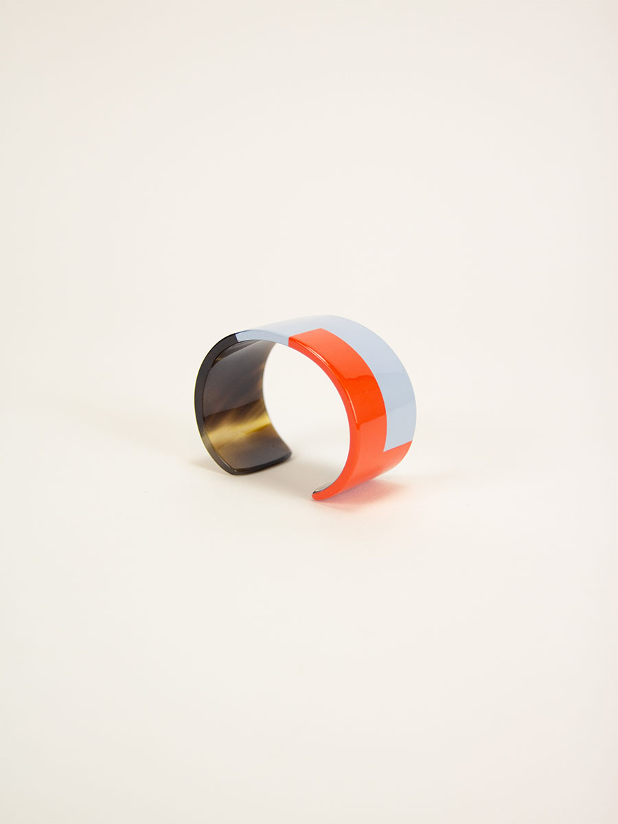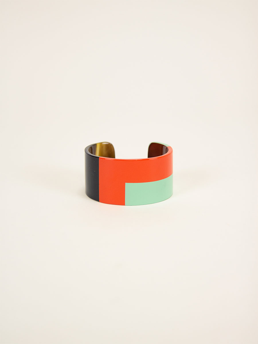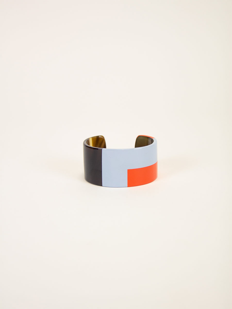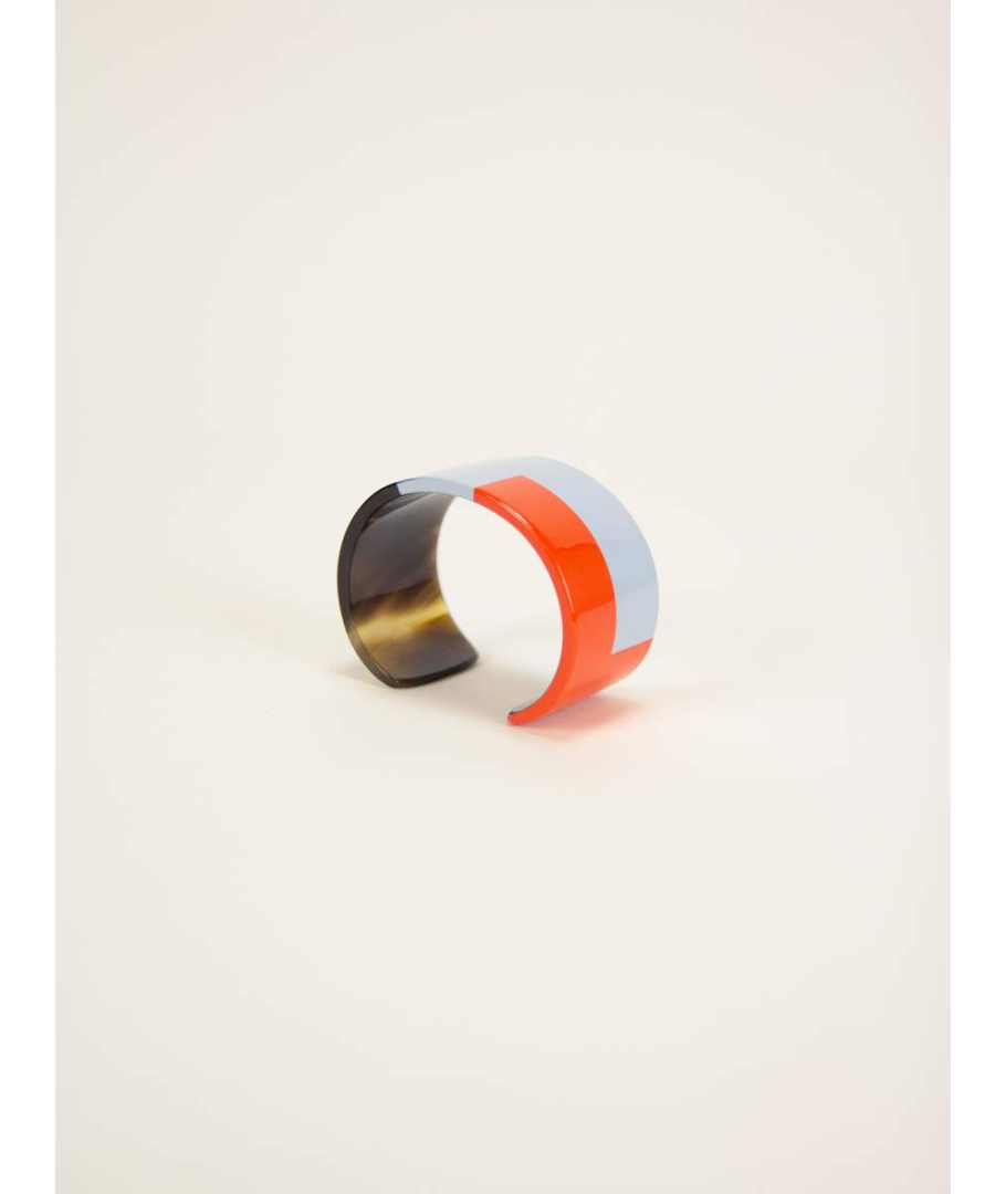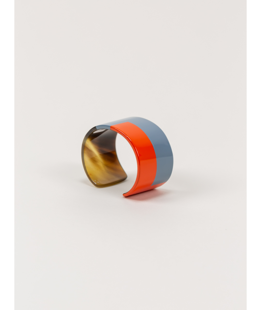 Manchette épaisse en bois laqué orange, bleu clair et sable, taille S