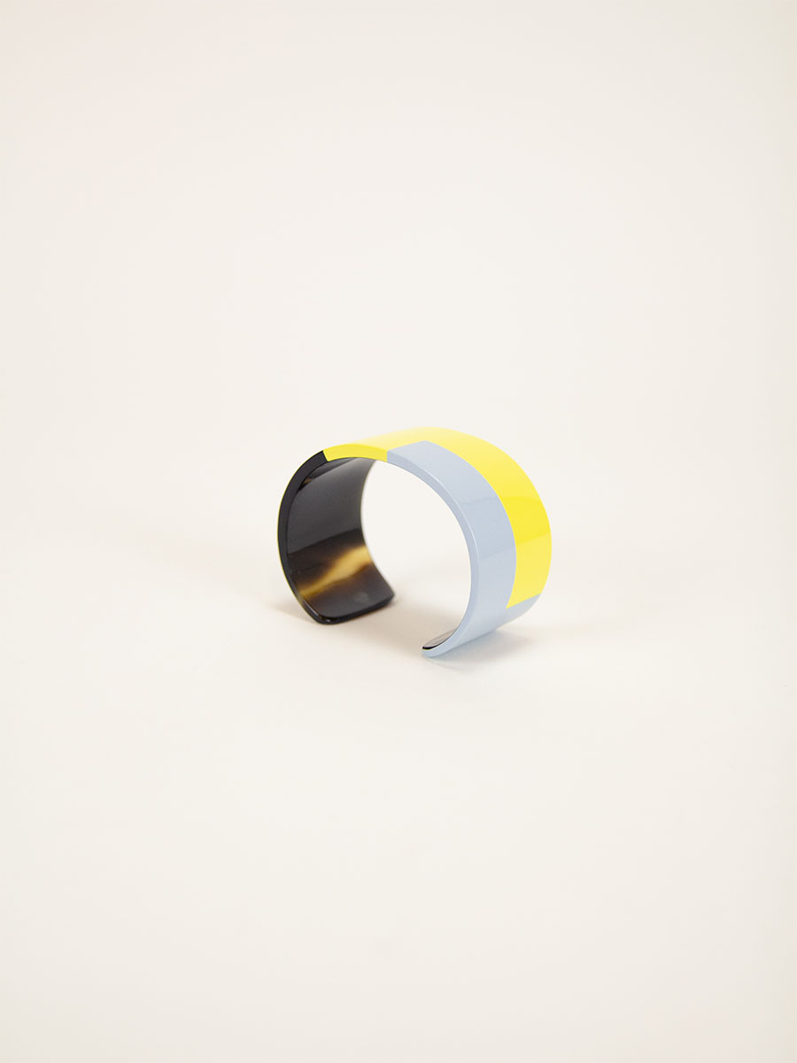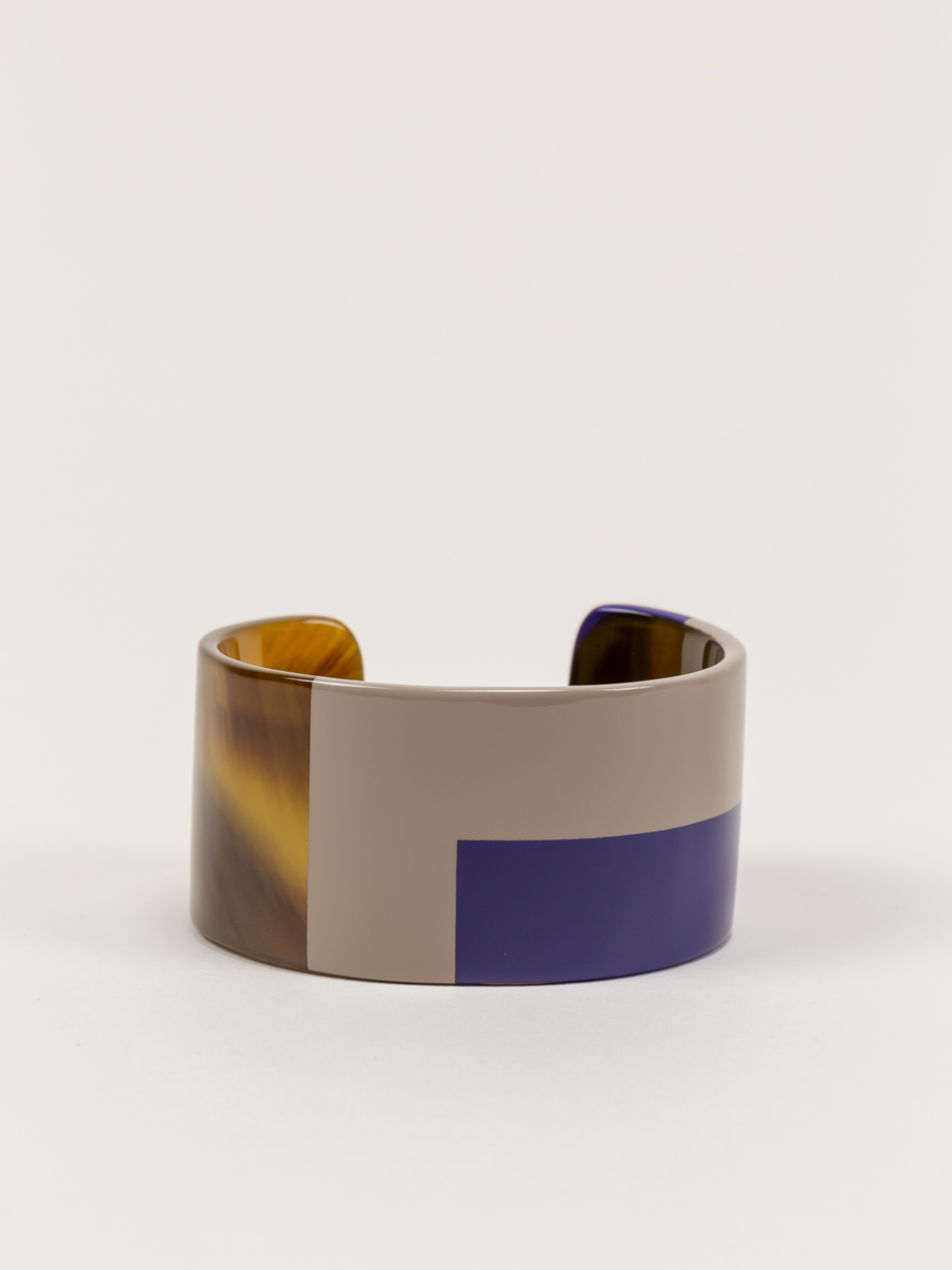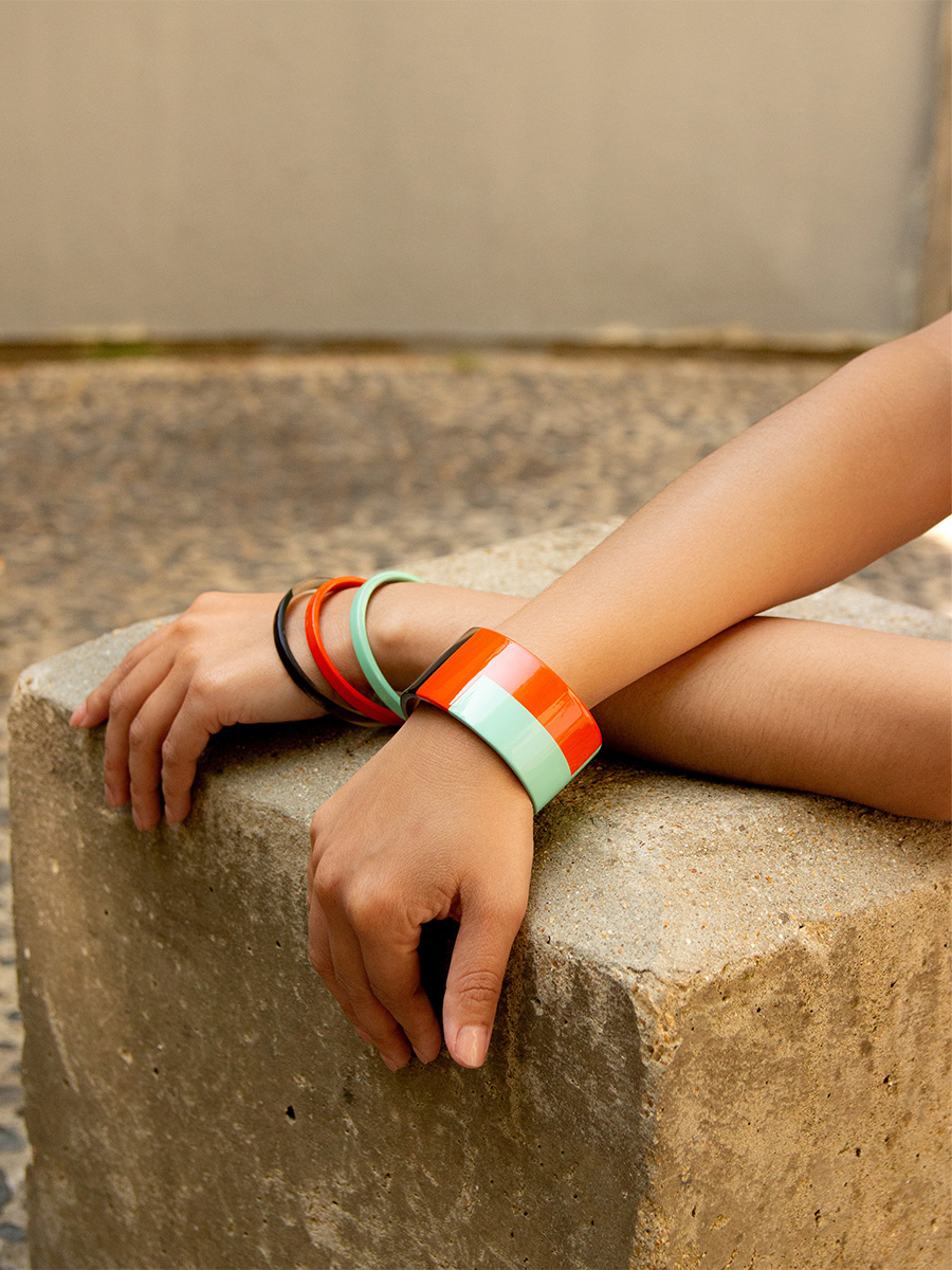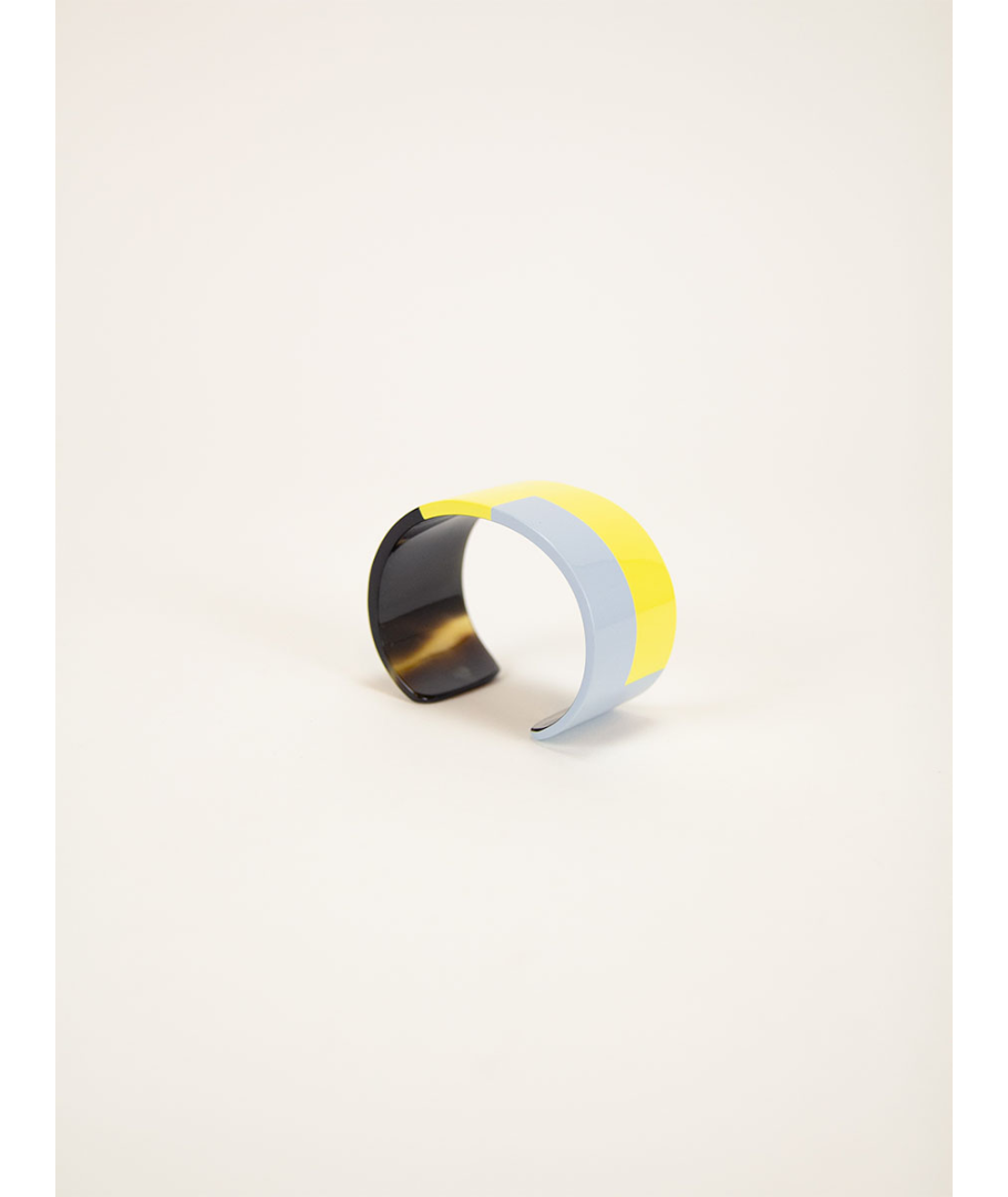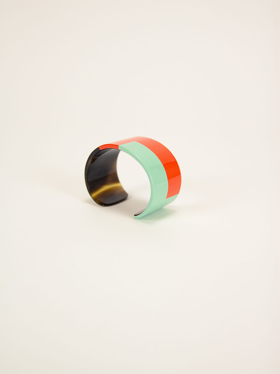 Manchette épaisse en bois laqué orange, bleu clair et sable, taille S