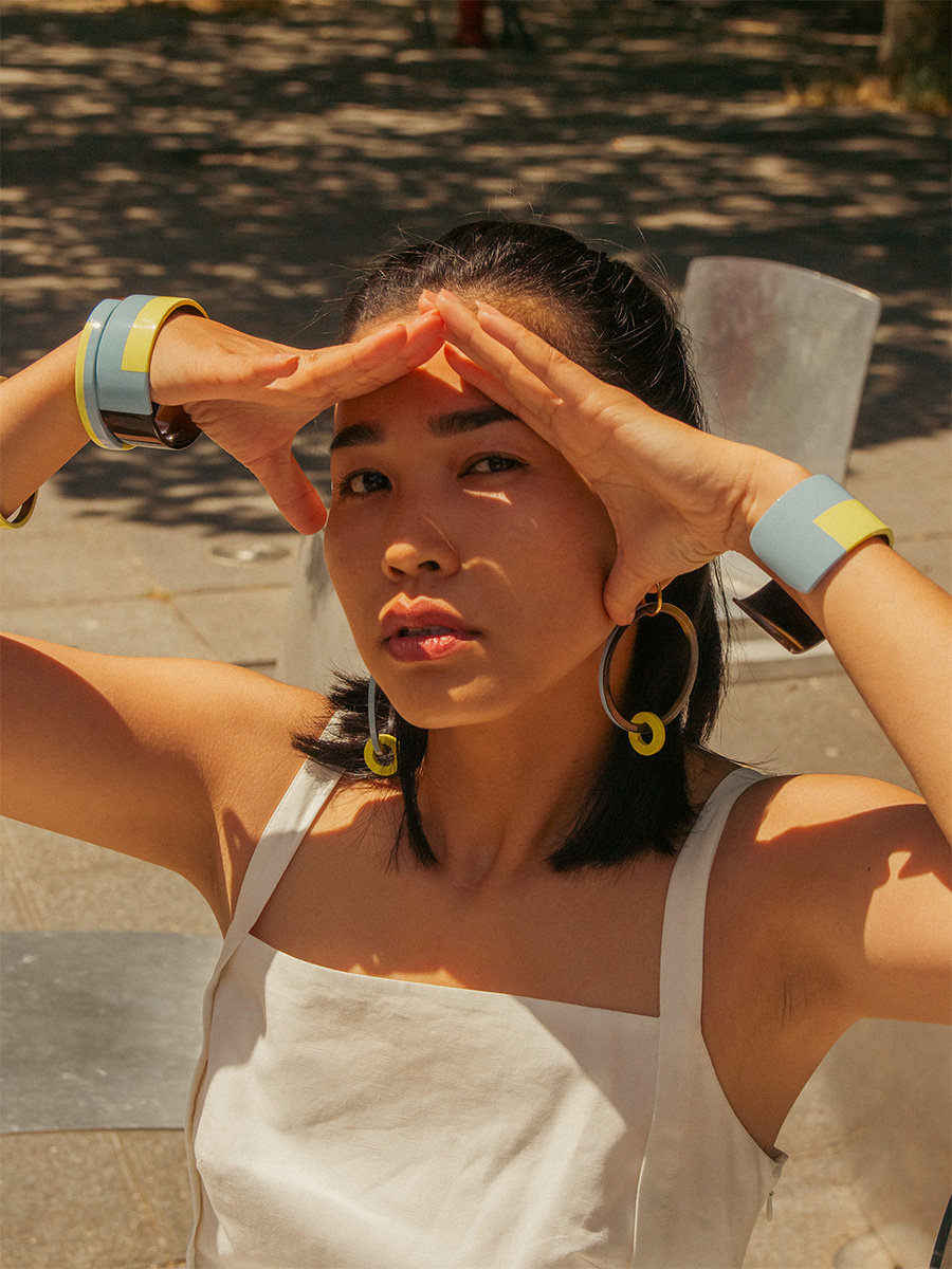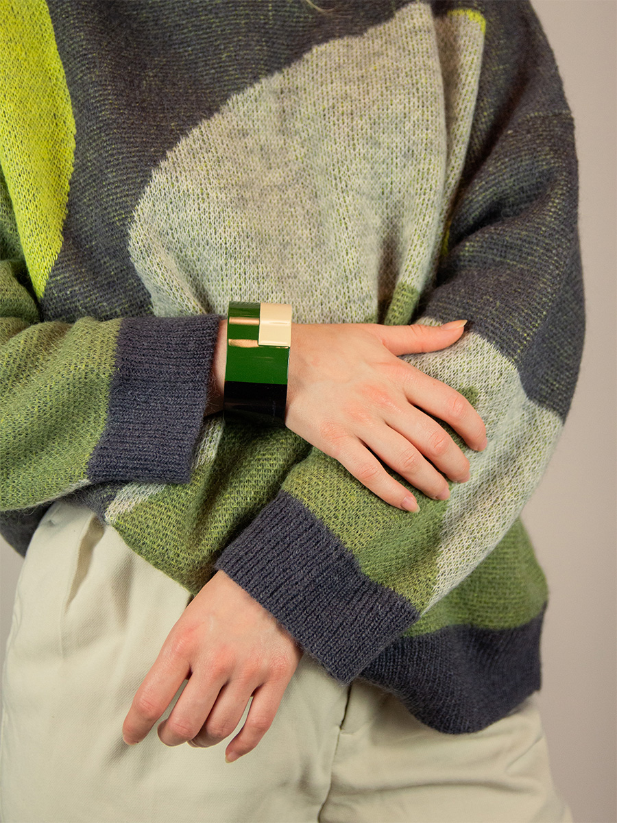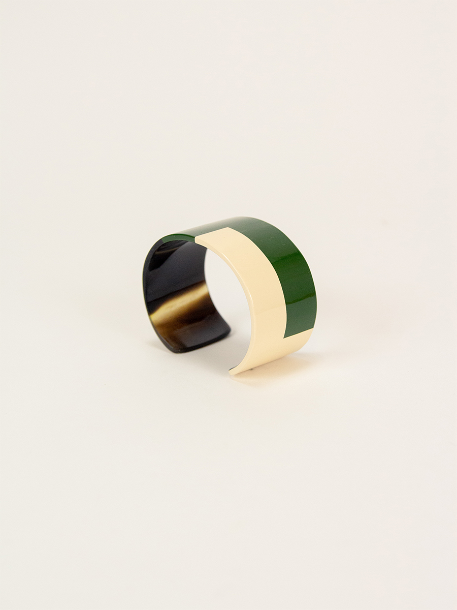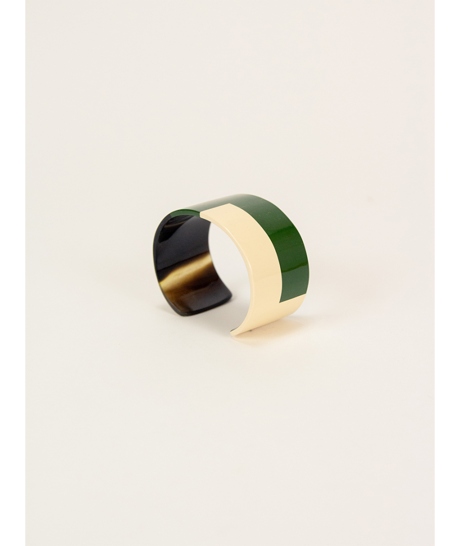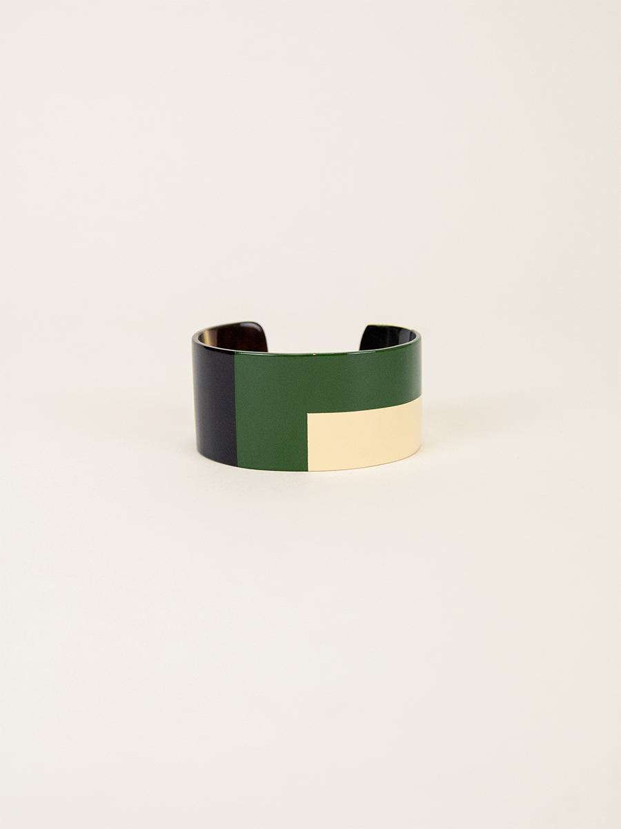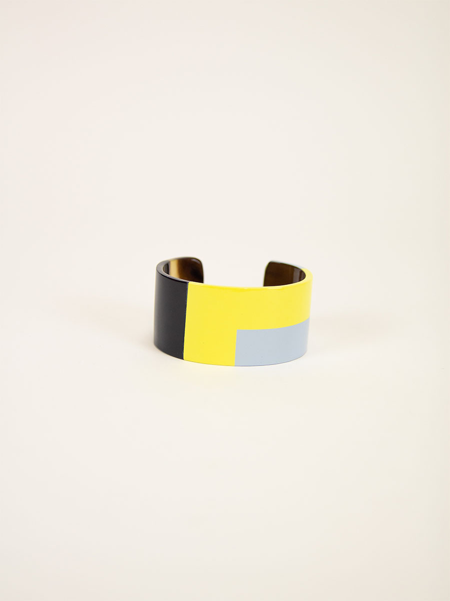 Manchette épaisse en bois laqué orange, bleu clair et sable, taille S