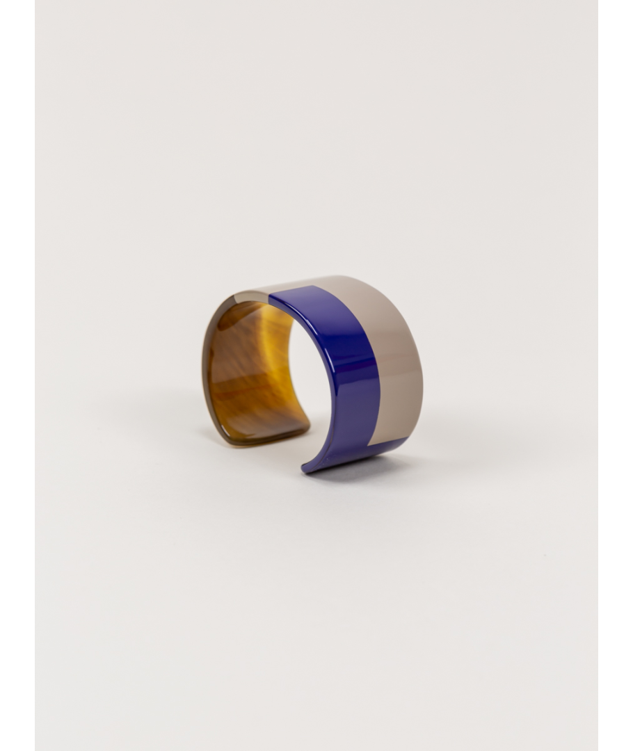 Manchette fine en bois laqué bleu nuit, bleu clair er orange, taille S