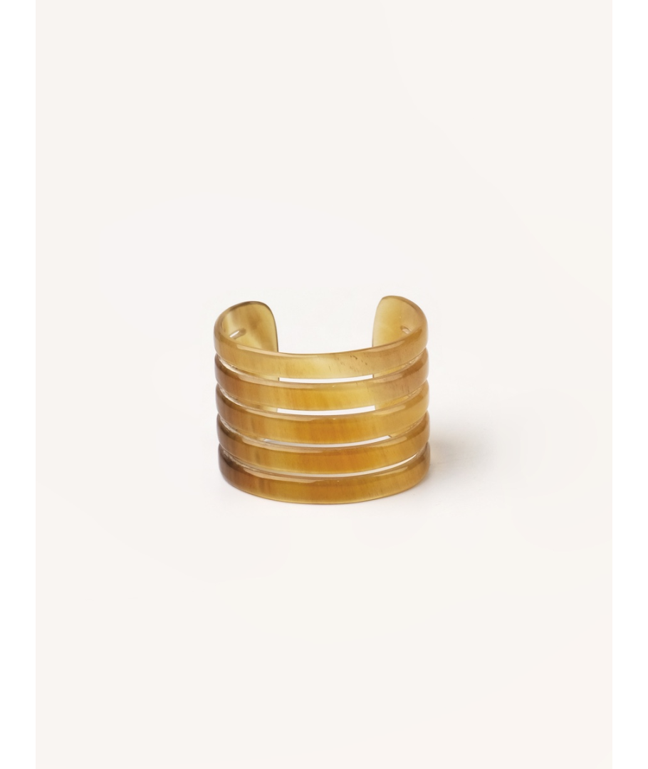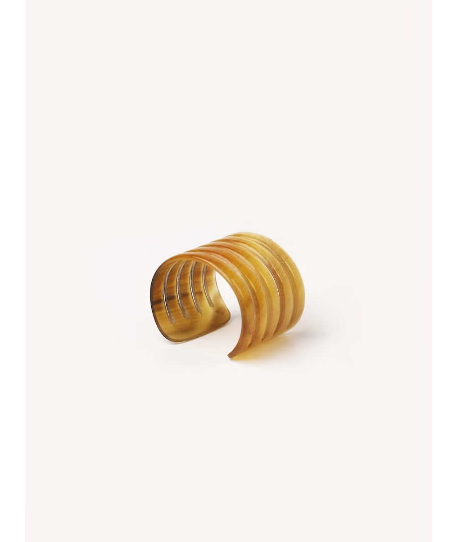 Manchette épaisse en bois laqué orange, bleu clair et sable, taille S