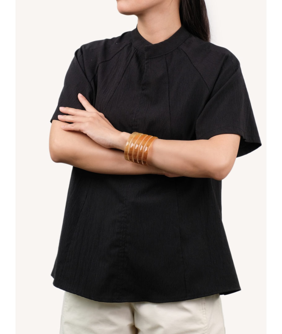 Manchette fine en bois laqué bleu nuit, bleu clair er orange, taille S