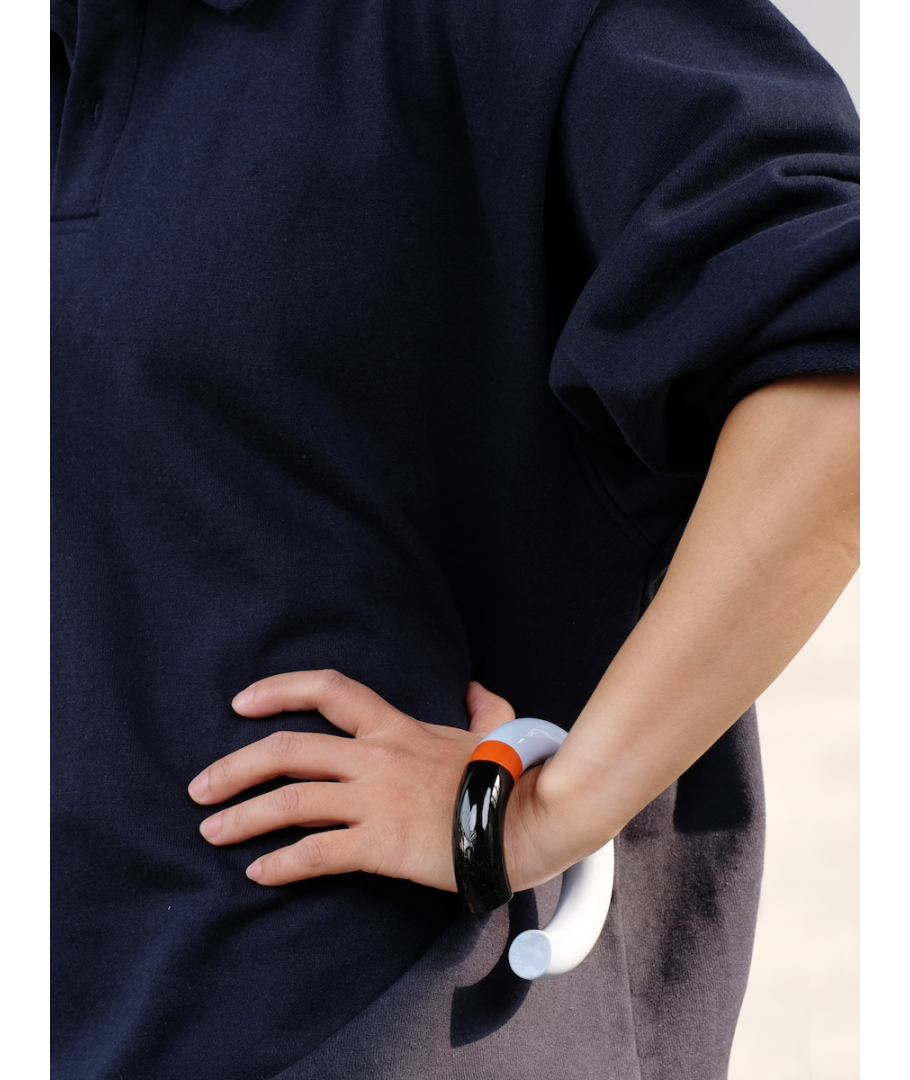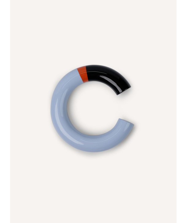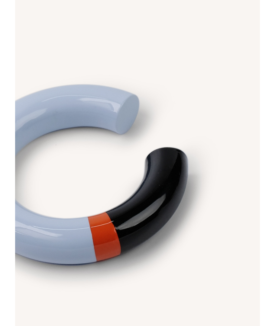 Manchette épaisse en bois laqué bleu clair, bleu nuit et orange, taille L