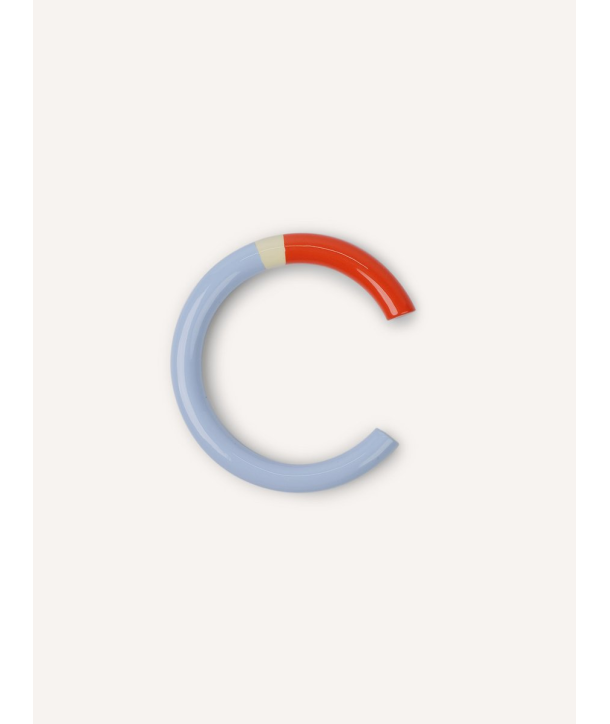 Manchette fine en bois laqué bleu clair, orange et sable, taille L
