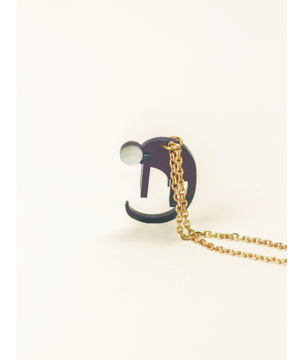 Monkey charm for necklace in black horn and mother-of-pearl