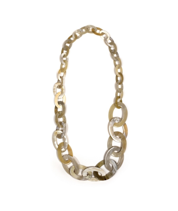 Collier anneaux plats ovales fins (3 tailles) en corne blonde Africaine
