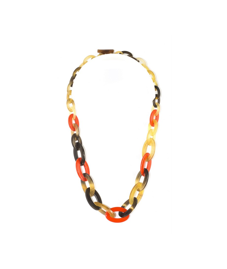Collier anneaux ovales plats et fins en sabot et laque orange